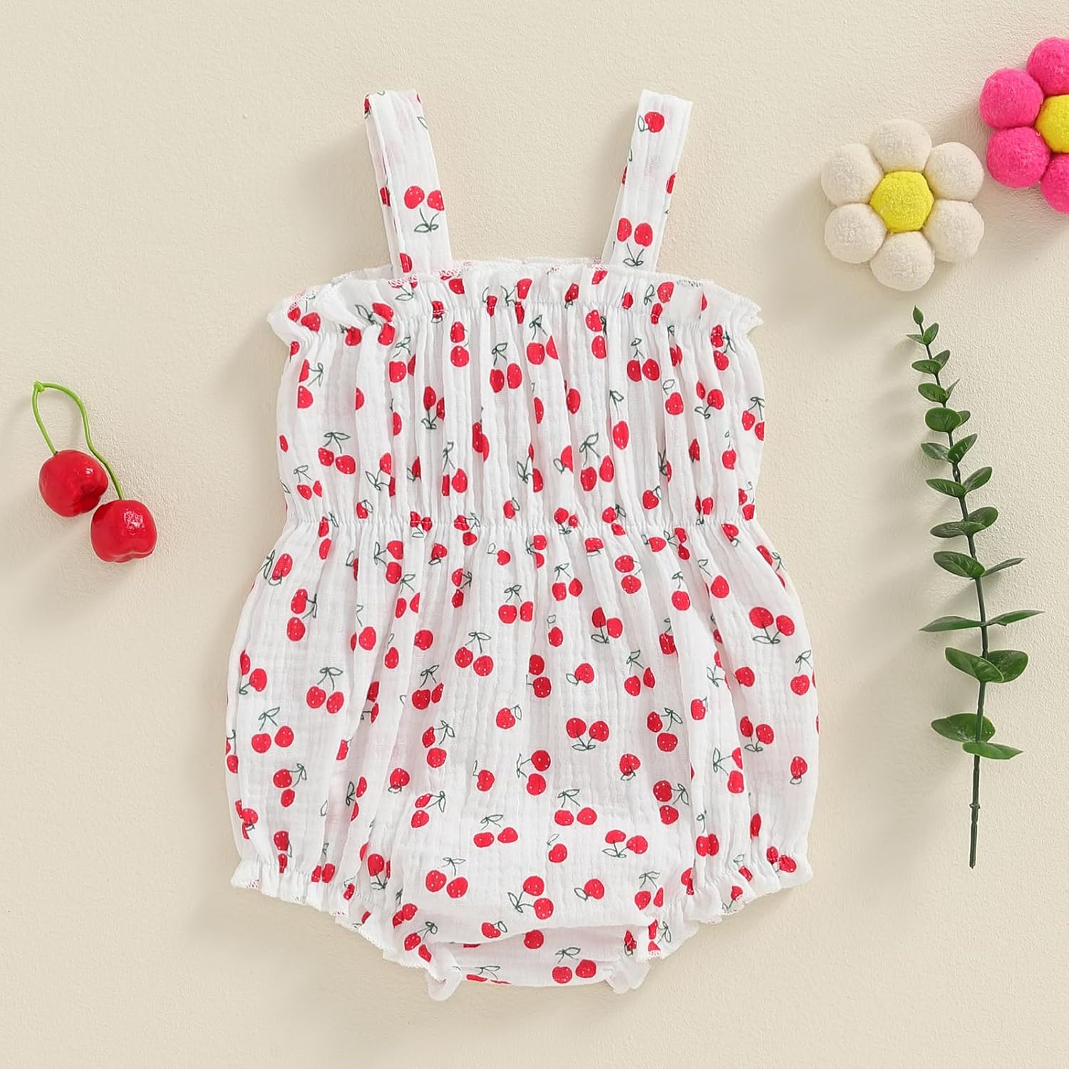 Newborn Infant Baby Girls Romper Cute Print Clothes Outfits Sleeveless with Bows Girls Summer One Piece Jumpsuit