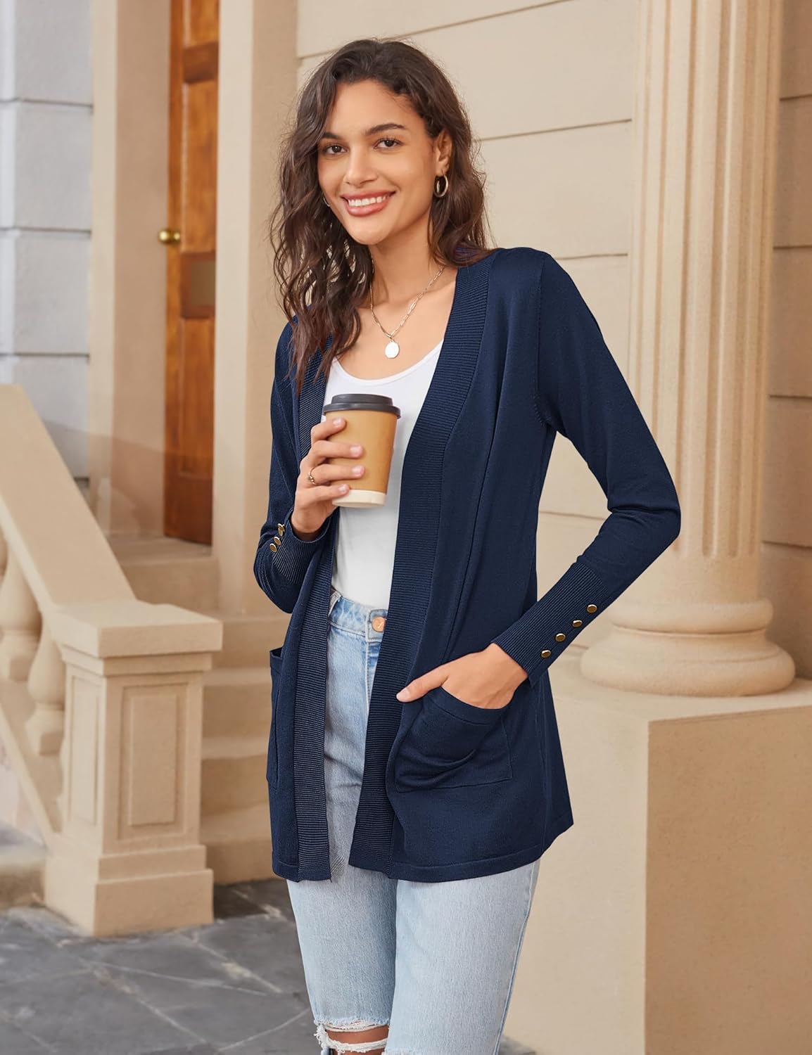 Newchoice Womens Knit Open Front Cardigan Sweaters with Pockets Long Sleeve Dressy Casual Lightweight Cardigans