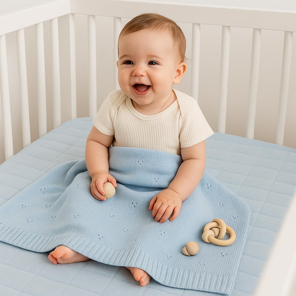 Comfortable and breathable knit child blanket: Comprised of 100% cotton, this new child blanket gives a smooth, mild contact towards delicate child pores and skin, appropriate for year-round consolation at dwelling or on the go.