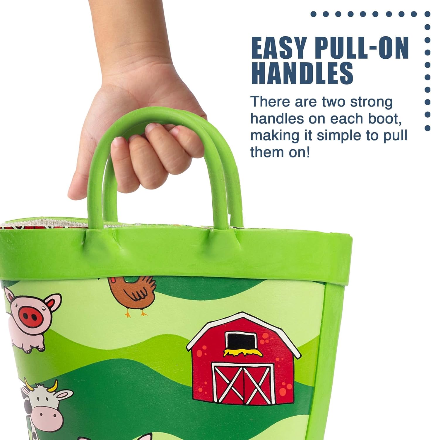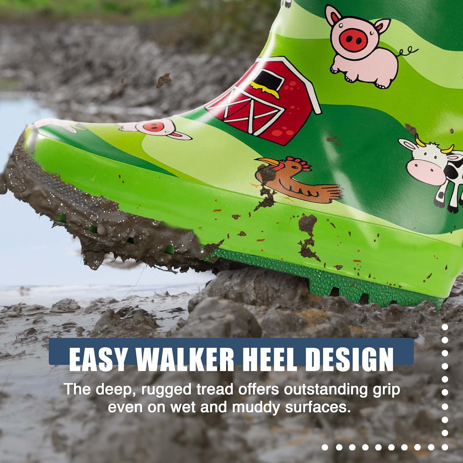There isn’t any slipping and sliding round on the moist grass in these boots. The deep, rugged lug soles present superior grip for each muddy puddle and slippery slope. Children can run round outdoors all day stomping puddles and by no means get their toes moist – the boots are 100% rubber and fully waterproof.