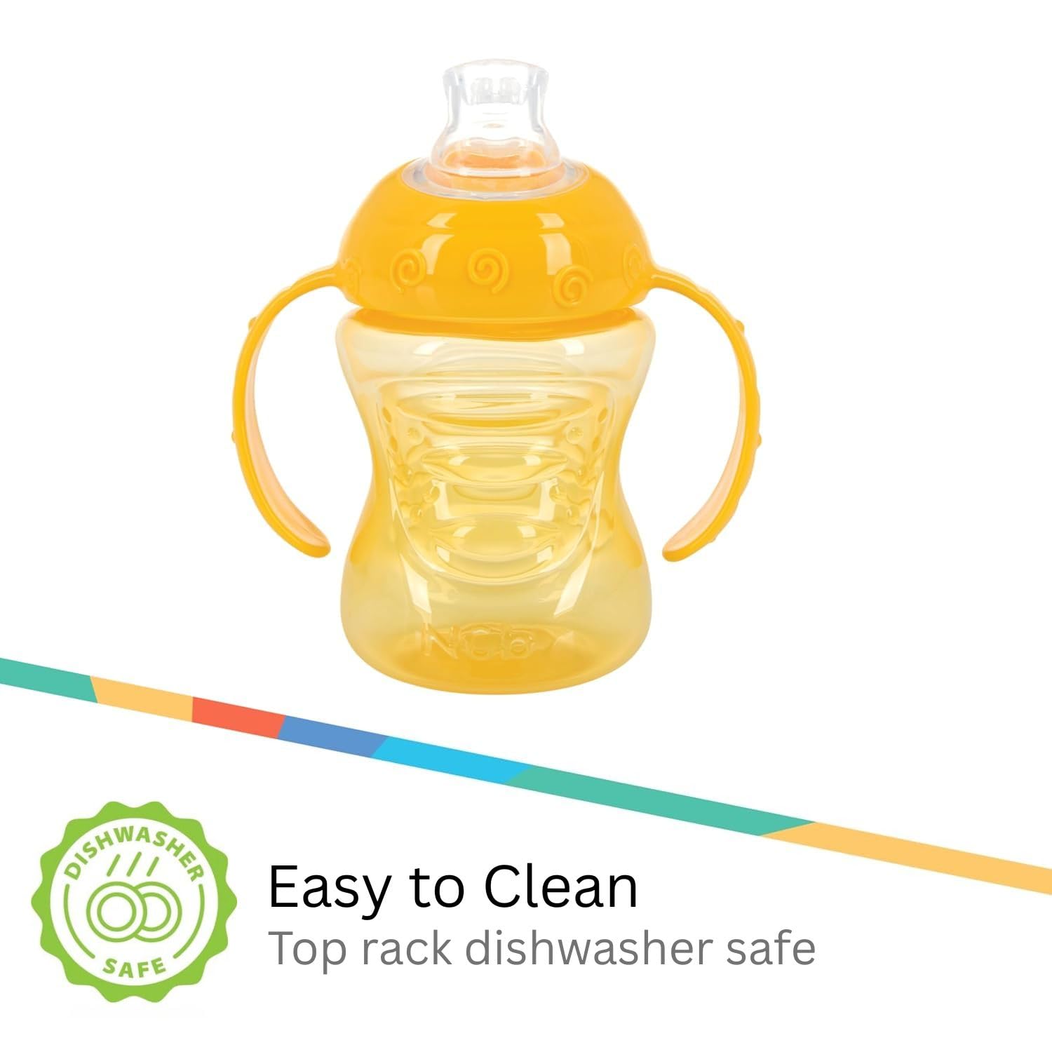 The Nuby Grip N’ Sip cup has two handles that are good for a kid’s transition to self feeding and ingesting. The sturdy handles are designed for small palms and are comfy and straightforward to carry. The distinctive, one piece No-Spill smooth silicone spout is straightforward to make use of and straightforward to scrub. This Tremendous Spout promotes a pure ingesting motion and wholesome oral improvement. The smooth silicone No-Spill spout is uniquely designed to forestall drips and spills whereas being delicate and mild to your kid’s gums and new enamel. The stress delicate TOUCH-FLO function regulates fluid consumption with the sucking motion of child- when sucking motion ceases, the spout closes, making certain a leak resistant cup.