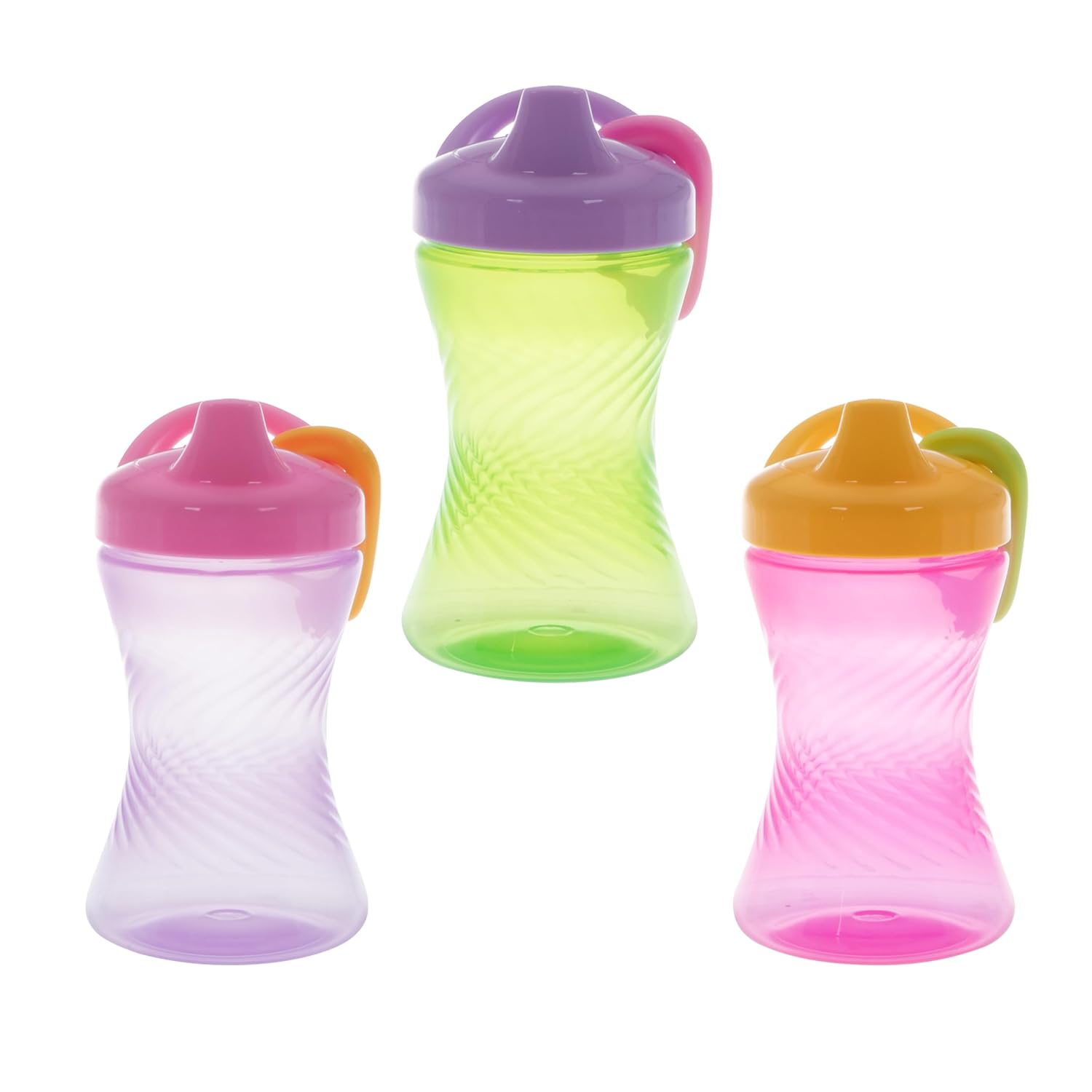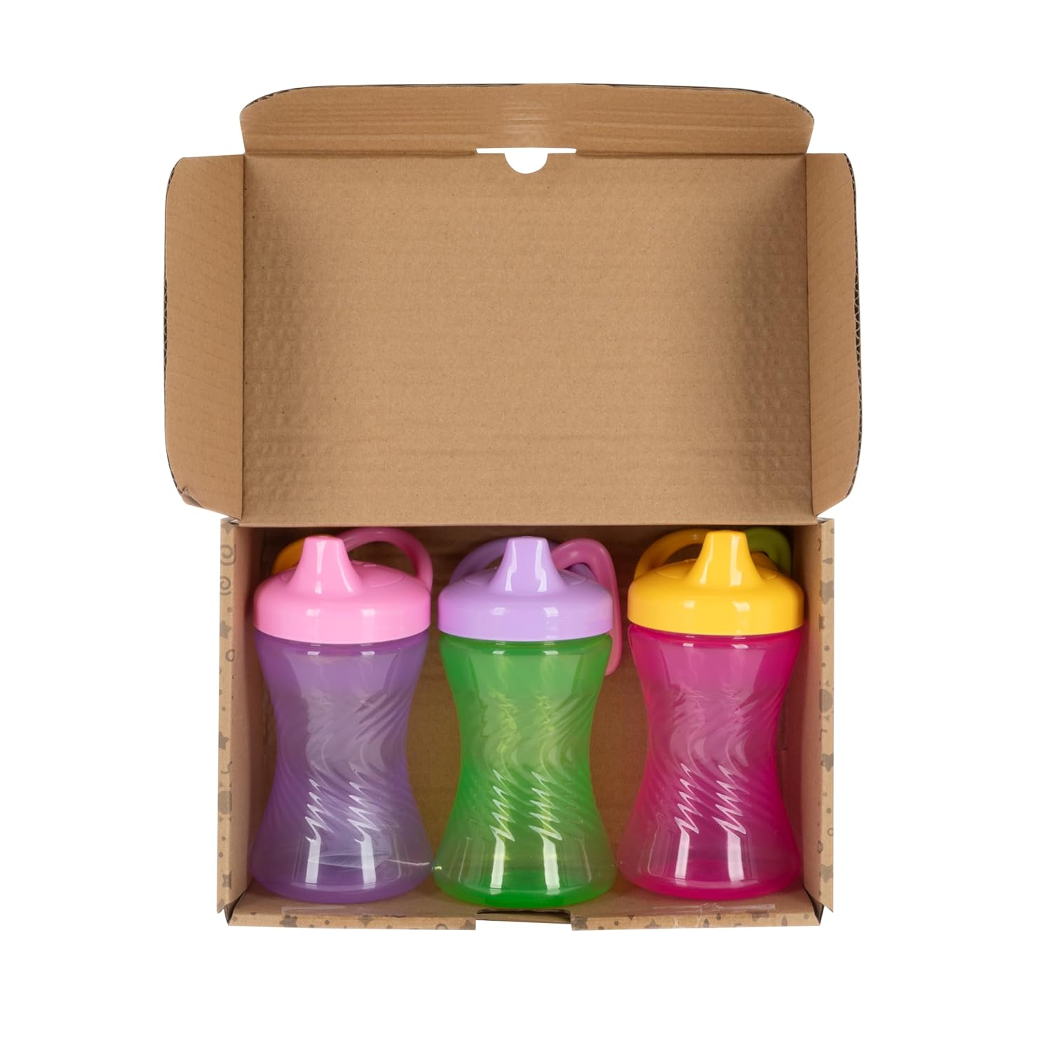 Nuby No-Spill Hard Spout Sippy Cup with Easy Grip – (3-Pack) 10 oz – Baby Sippy Cup for 6+ Month Old – Pink/Green/Purple