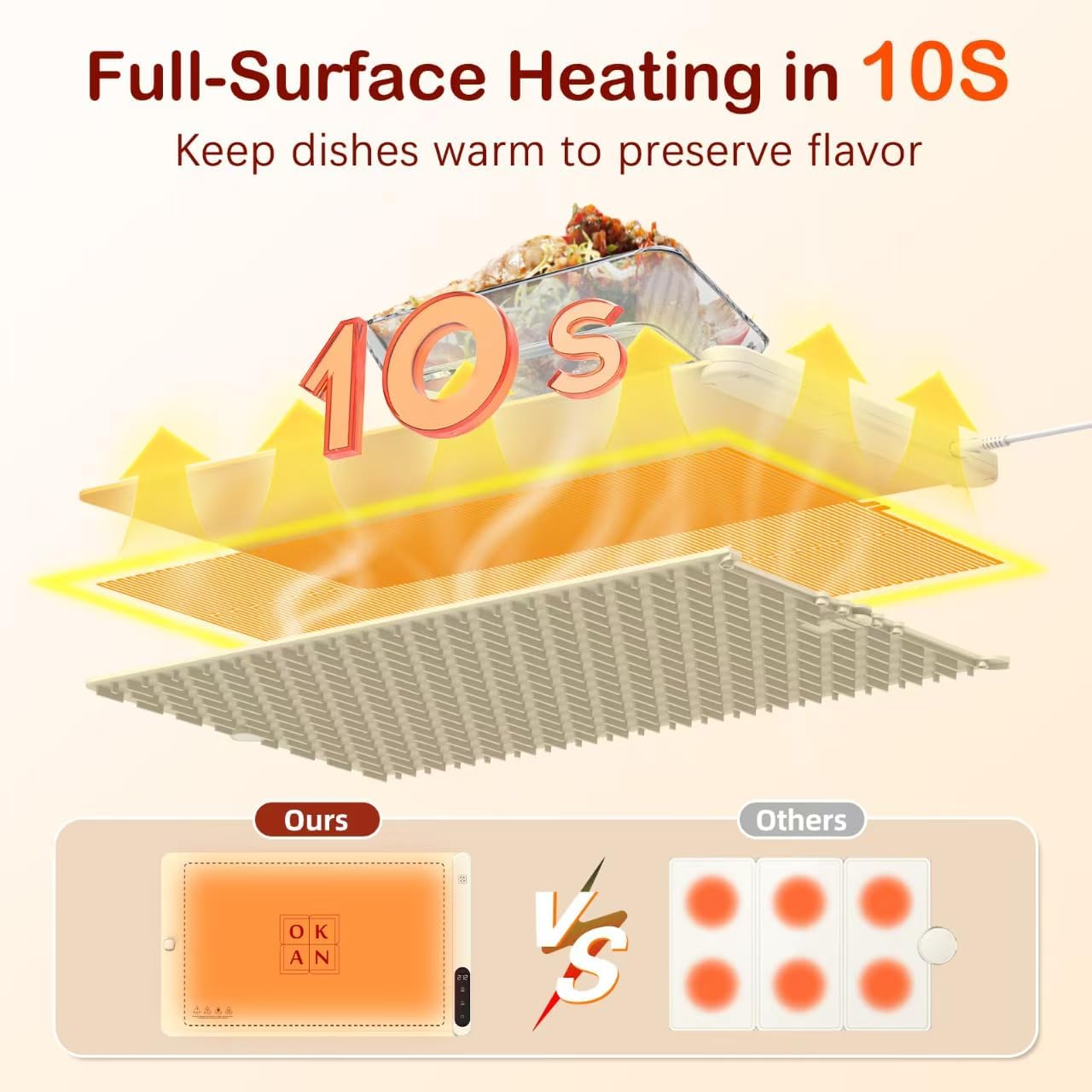 ✅ Quick Full-Floor Heating in 10 Seconds – Superior graphene heating ensures speedy and even heat throughout the whole mat to maintain your meals scorching and flavorful.