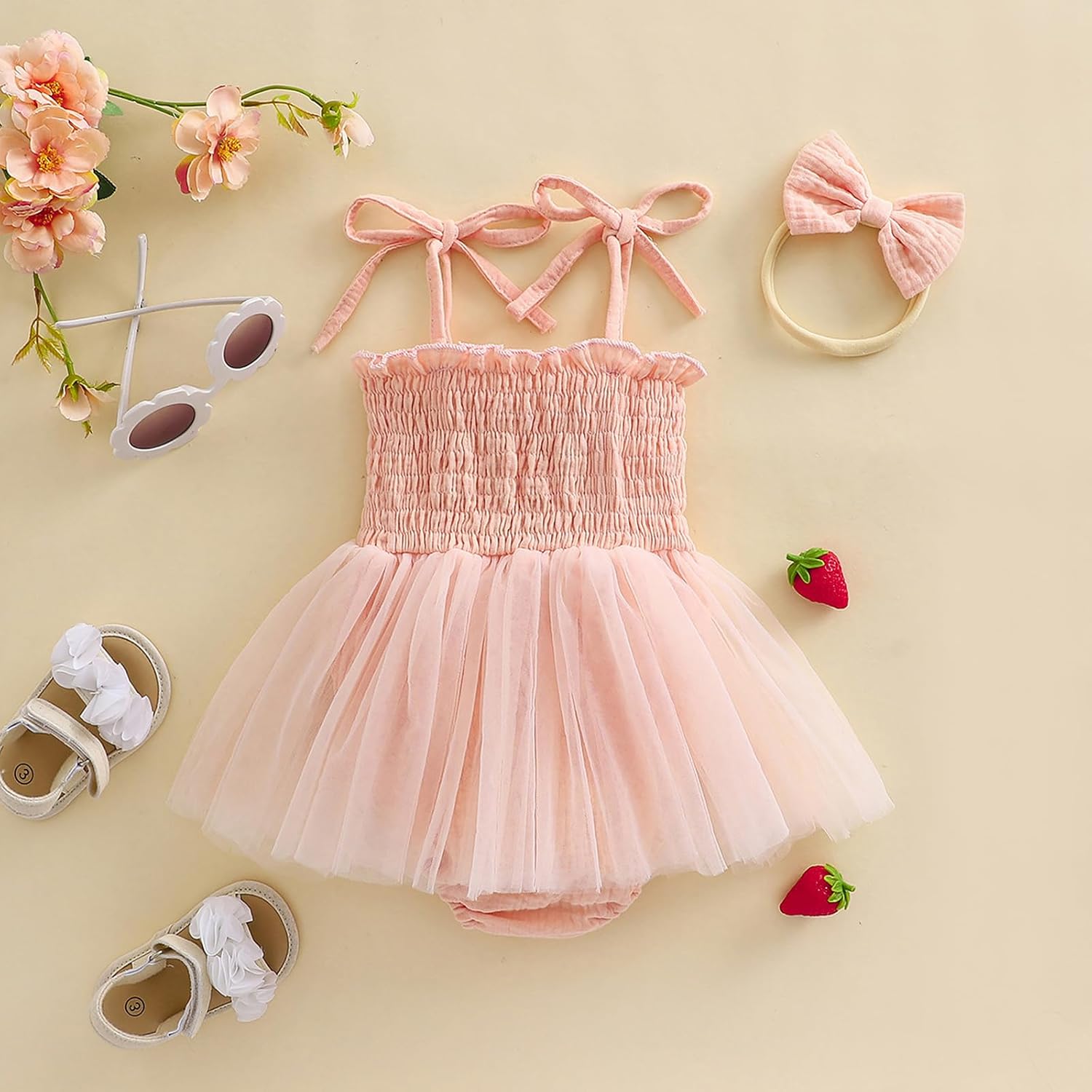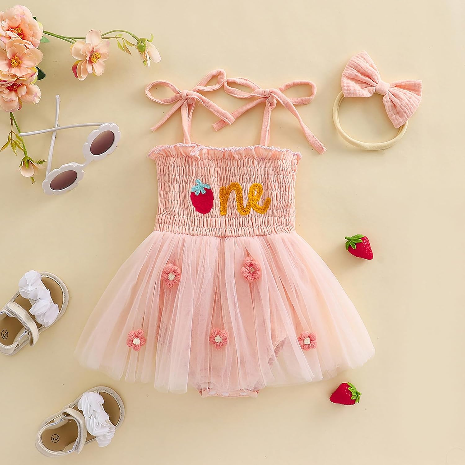 One Year Old Girl Birthday Outfit Summer Clothes Tie Up Romper Bow Headband Fairy 1st First Birthday Outfit