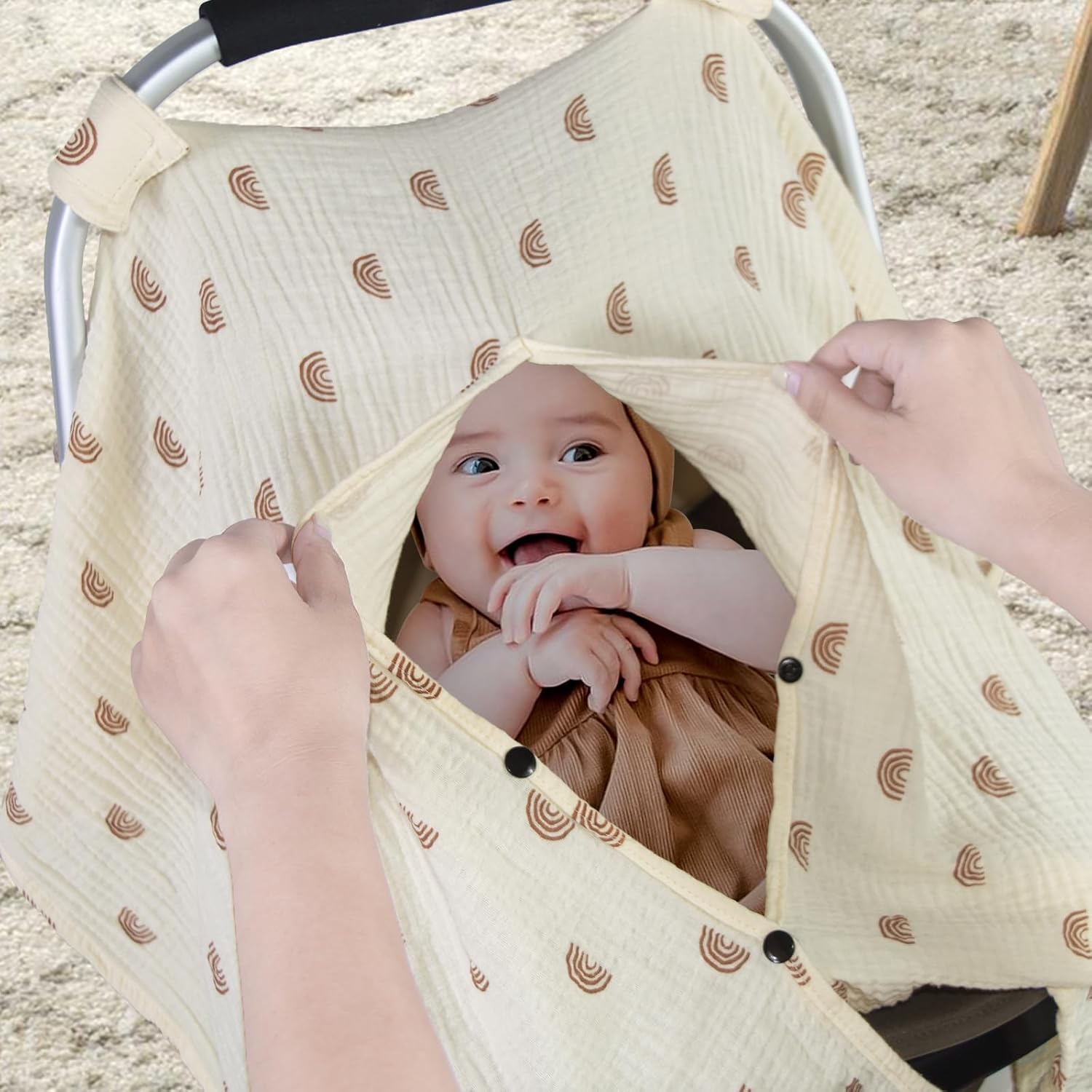 High quality Materials :The newborn automobile seat cowl is product of muslin cotton . Our automobile seat cover can present a quiet setting to your child to sleep in.
