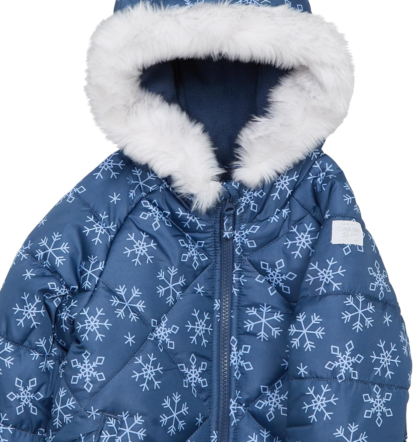 Thoughtfully designed for energetic youngsters, the jacket incorporates a smooth-glide entrance zipper, elastic cuffs, and a removable, adjustable hood that seals out chilly gusts. The bib overalls have adjustable shoulder straps for a just-right match and strengthened knees for lasting sturdiness. Deep pockets hold mittens, snacks, or treasures safe throughout adventures.