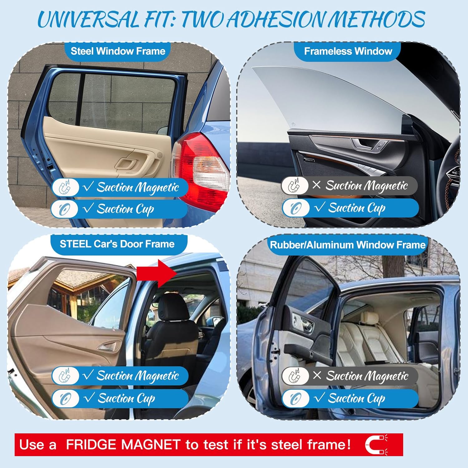 Magnetic & Suction Cup: Our cute automotive window shade for child options twin attachment with magnets and suction cups, guaranteeing peace of thoughts throughout use, with out worrying about falling off