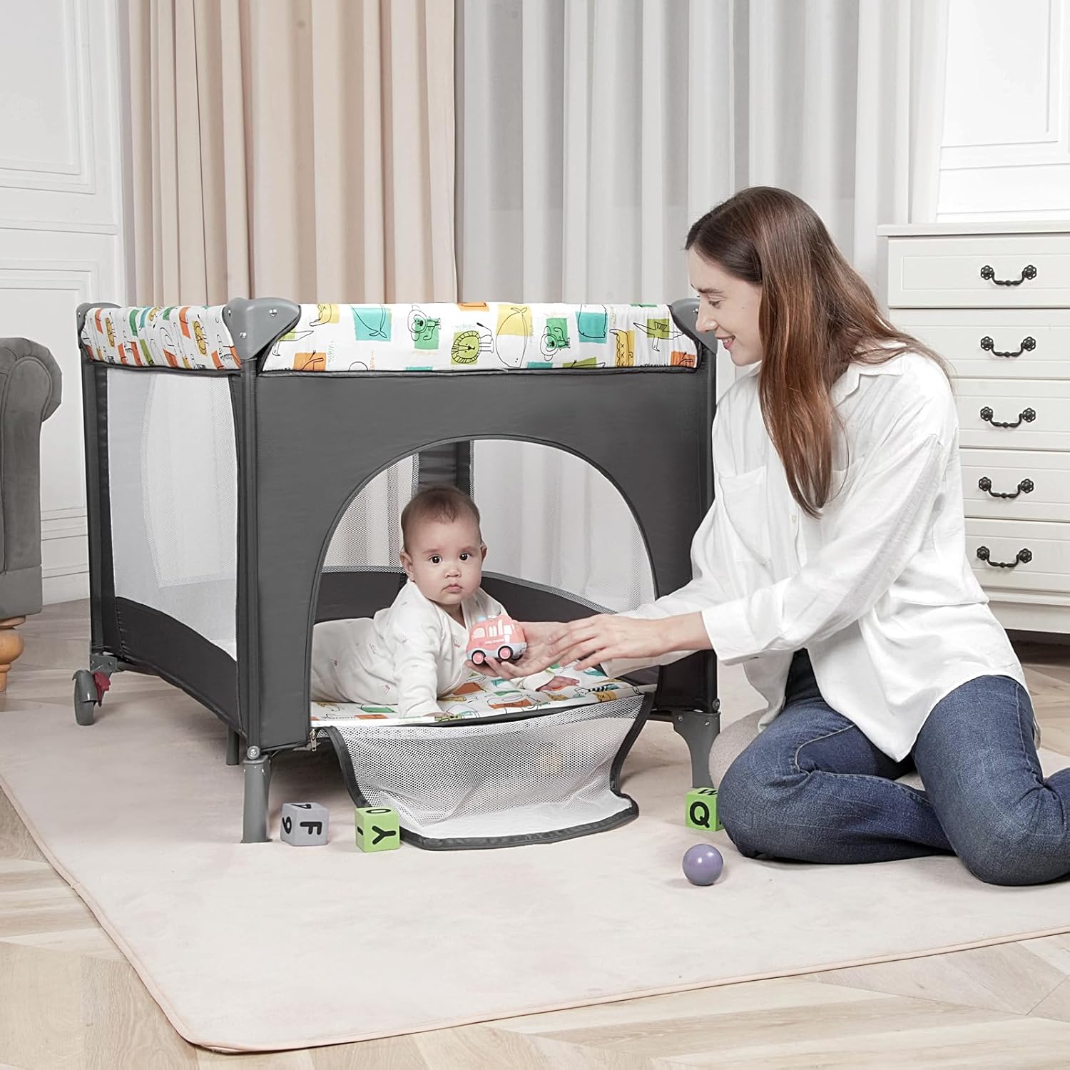 【Simple to Set up & Carry】—Fast and simple to assemble and fold with out every other instruments. It additionally comes with a carry bag for straightforward carrying on the go and can be utilized as an out of doors journey crib