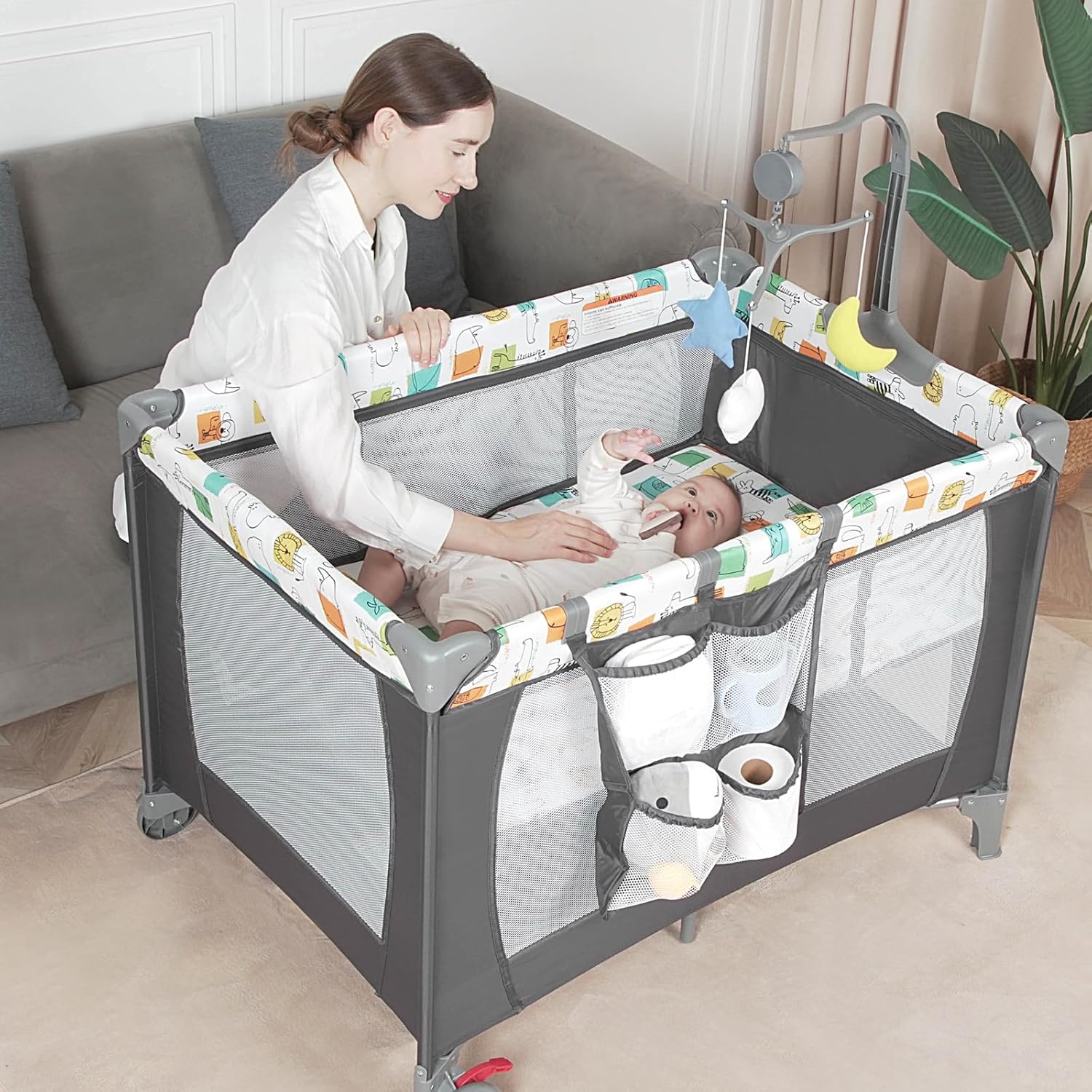 【3-IN-1 Pack and Play】—Afgbf 3 in 1 pack and play could be transformed into a wide range of modes to fulfill the totally different wants of the infant within the rising course of: child bedside sleeper, child crib, diaper altering desk, pack and play