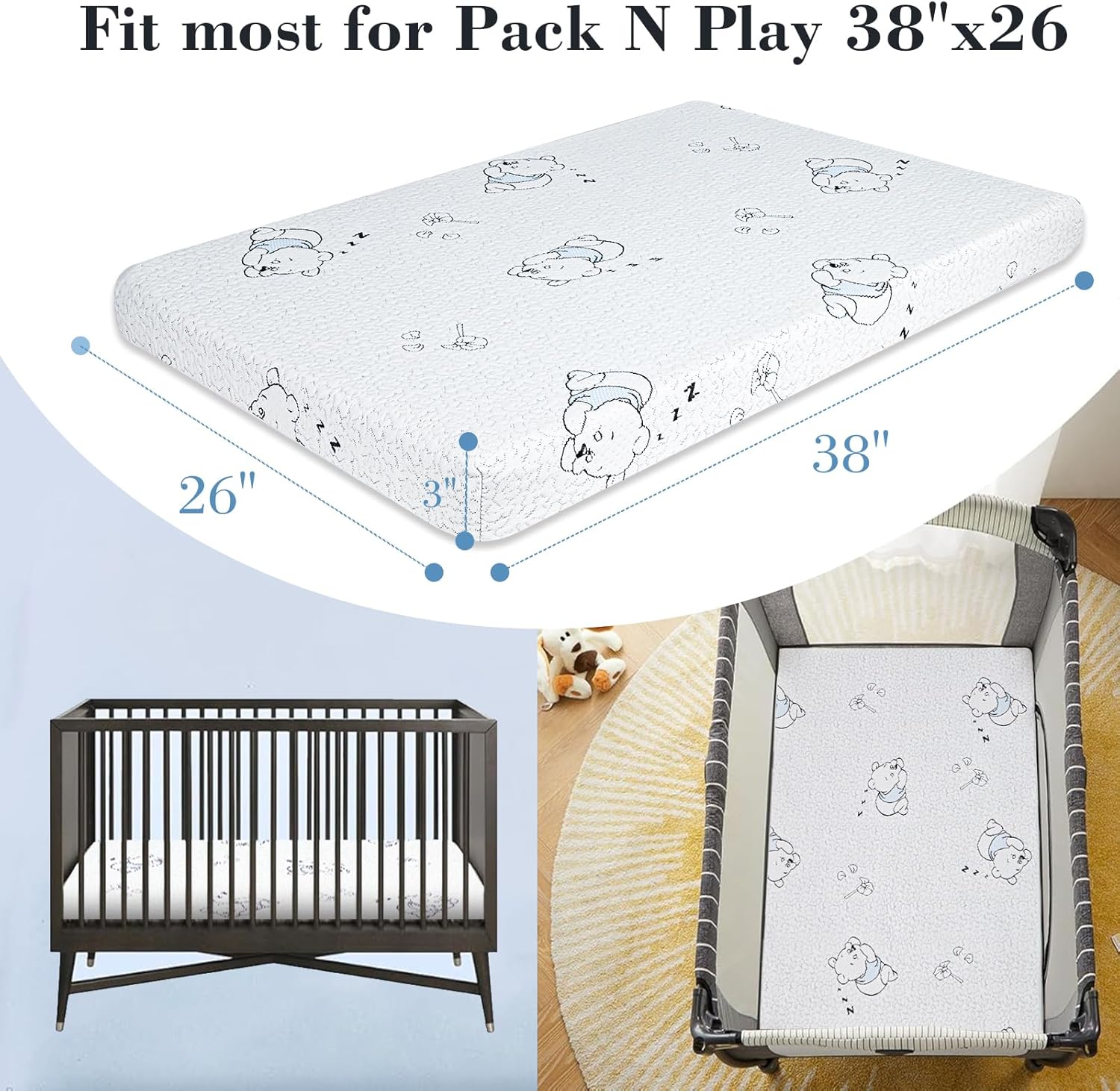 Designed for Pack N Performs – The pack and play mattress is 38 x 26 inches in dimension(not designed for traditional cribs or mini/moveable cribs). Offers a comfortable and safe match with rounded edges, decreasing gaps and making a safer house to your toddler whereas exploring.