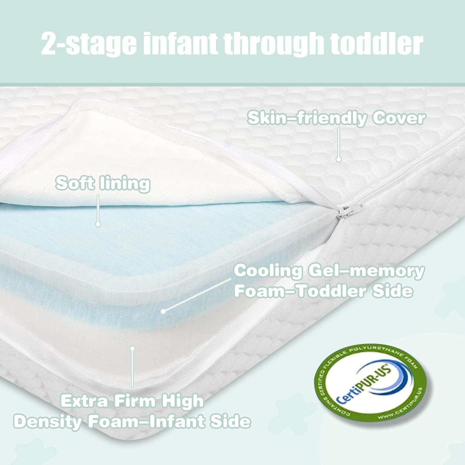 Premium Crib Mattress: Cocellona pack and play mattress is specifically designed to supply probably the most snug sleeping expertise for infants. This journey crib mattress is made up of cooling gel reminiscence foam and excessive density foam, serving to to help the newborn’s backbone and supply superior consolation for his or her head, again and legs, making certain a extra restful and cozy sleep for the newborn