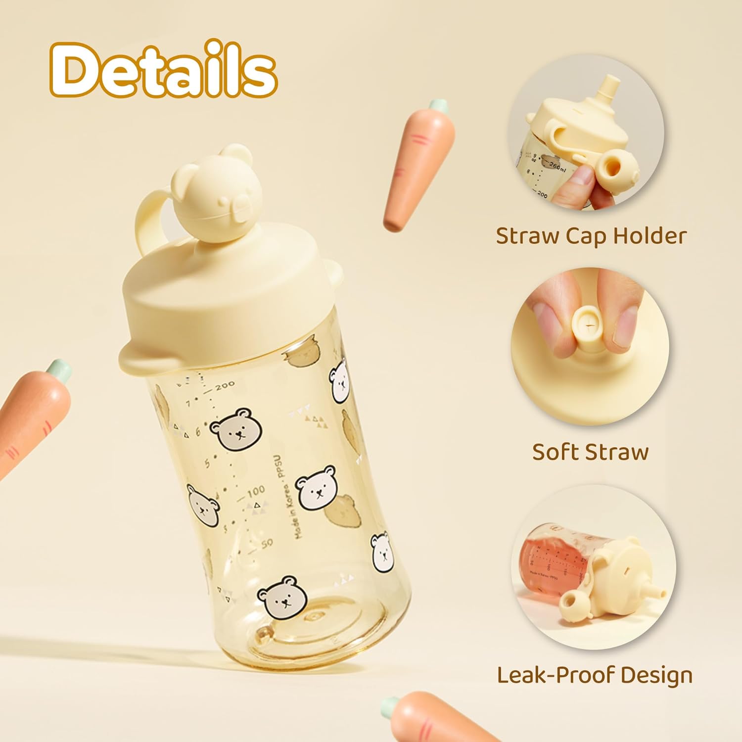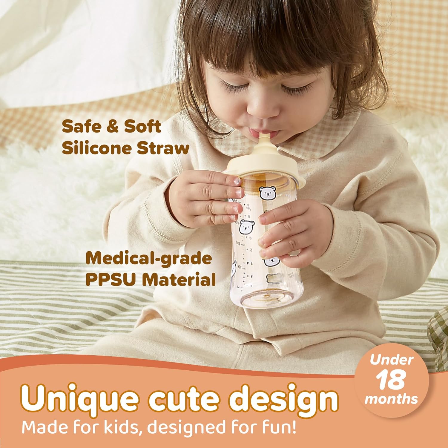 CUTE AND FUNCTIONAL DESIGN: That includes an lovely bear-shaped lid, this bear straw cup for infants will not be solely charming but additionally secures tightly to stop spills whereas ingesting. It’s a enjoyable addition to any assortment of children cups and is ideal as a sippy cup for 18 months outdated toddlers.