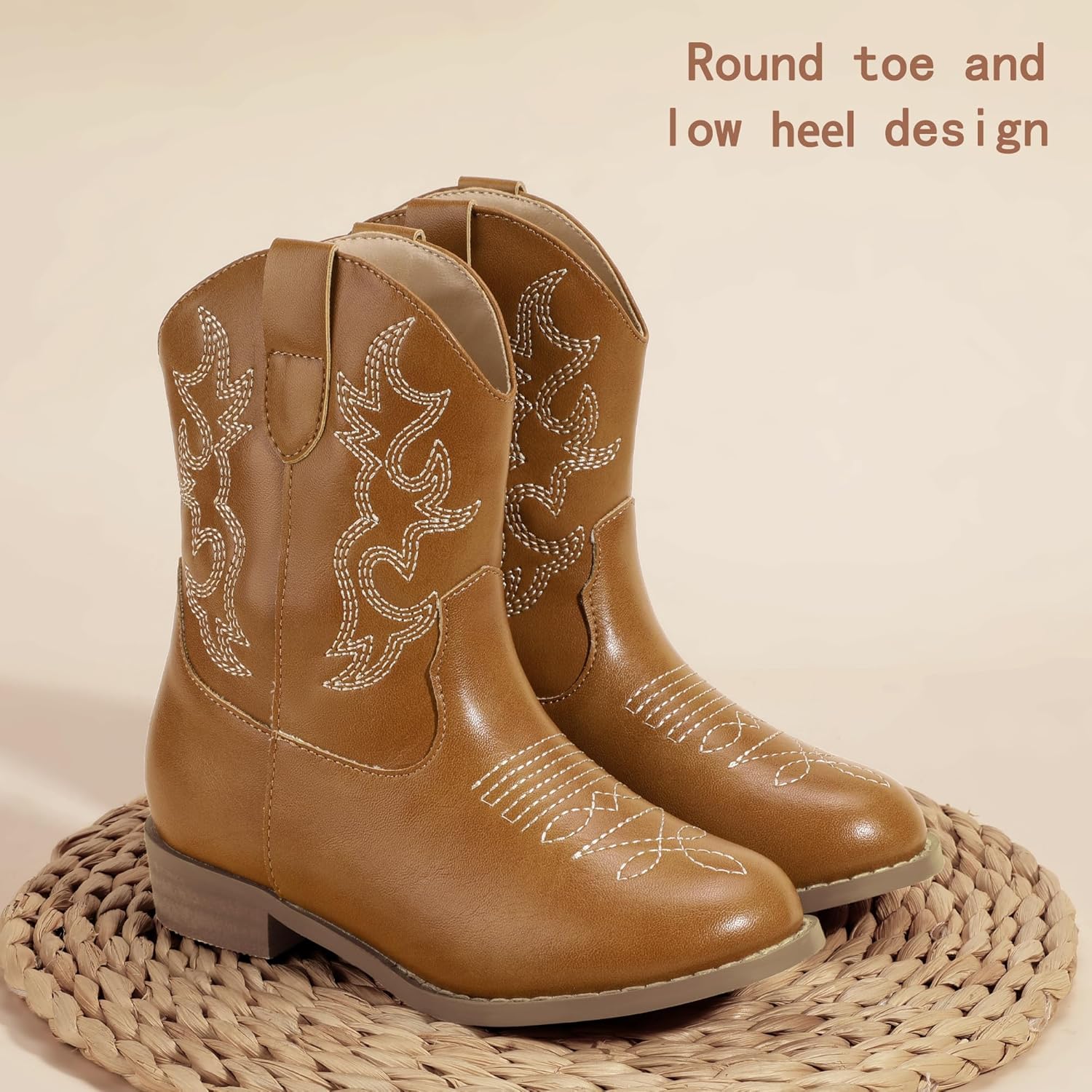 PANDANINJIA Girls Toddler Cowgirl Boots Riding Round Toe Boys Cowboy Boot Little Kids Short Calf Western Cowgirl Booties