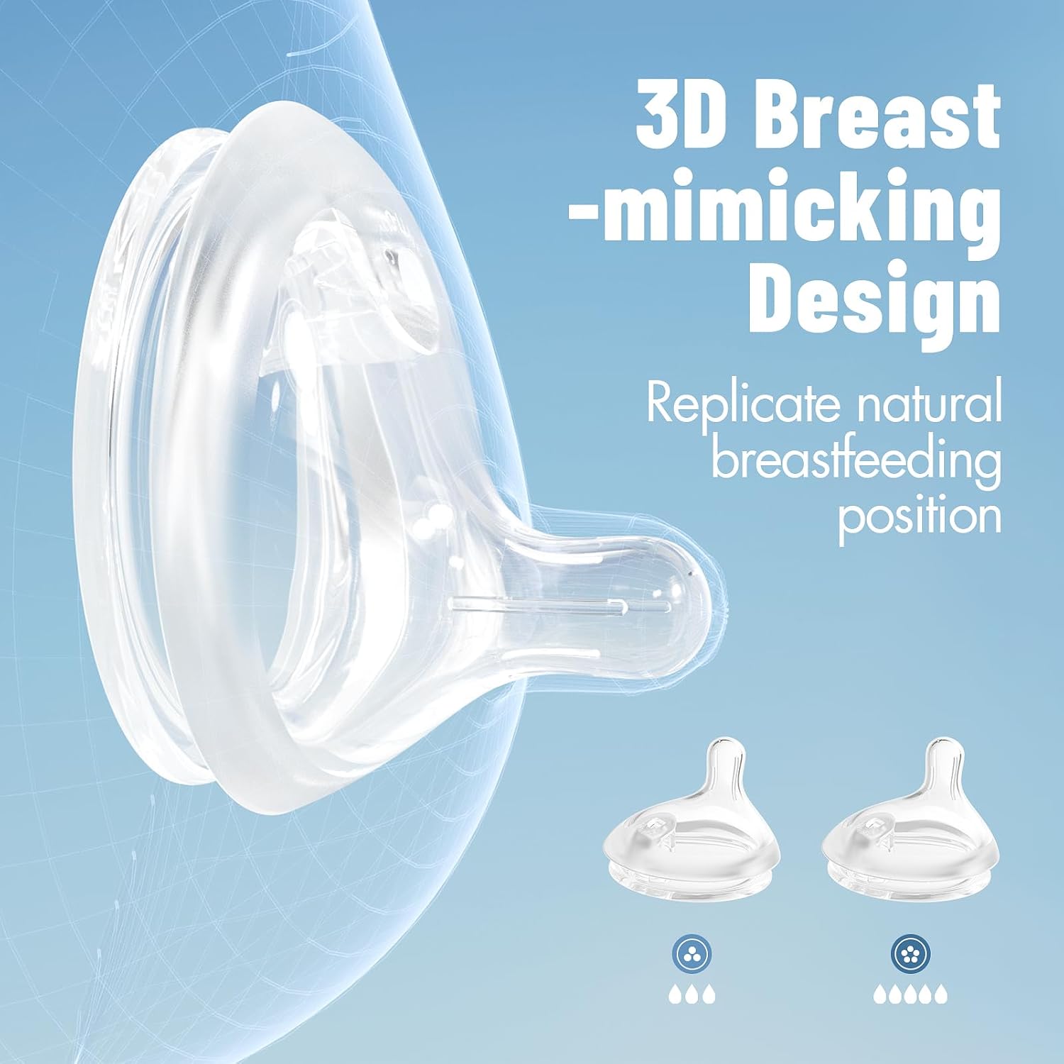 【Anti-colic Breast-mimicking】- The anti-colic tube system separates the fuel and liquid to scale back feeding discomfort. 3D Breast-mimicking nipple replicates the pure breastfeeding place, making it simpler for the newborn to drink milk. For infants of various ages, two nipples are included: medium stream and quick stream.