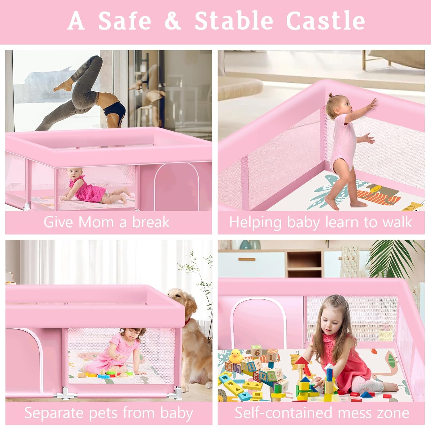 【FREE YOUR HANDS】With Jaobeem pink child playpen with mat, It will probably provide help to restrict your child crawl and play in a protected space. Thus you possibly can have a little bit spare time on enjoyable, cooking, house responsibilities, or simply free palms, whereas haven’t got to fret about them escaping and inflicting havoc.