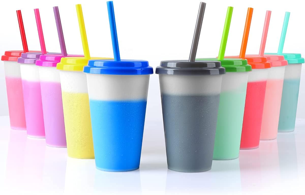 FUN COLOR CHANGING: These plastic cups include a magical coloration altering characteristic! You will see that it change coloration magically after you add chilly beverage or ice water beneath 59˚F. Numerous colours improve the sense of fashion and make your consuming time brighter
