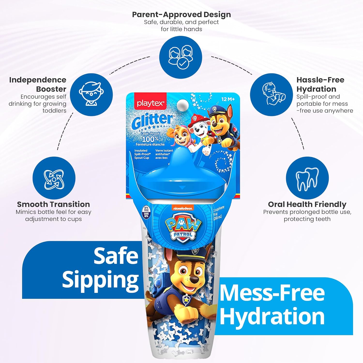 DESIGNED FOR LITTLE HANDS: Playtex Child Stage 3 Paw Patrol Glitter toddler ingesting cup is designed so your youngster will acquire confidence holding their very own cup; Good match for 1+ years and up; Theyre additionally BPA free