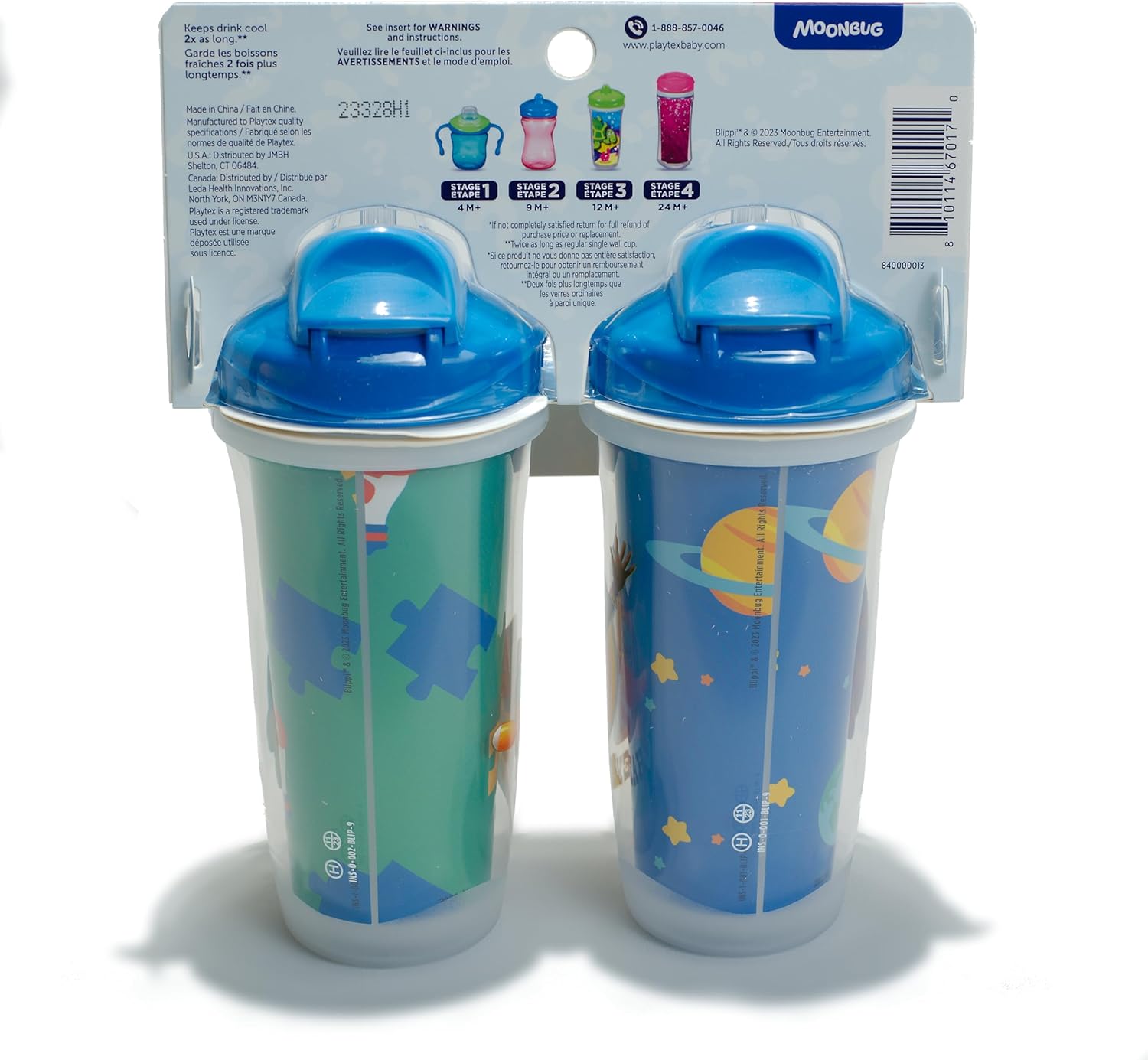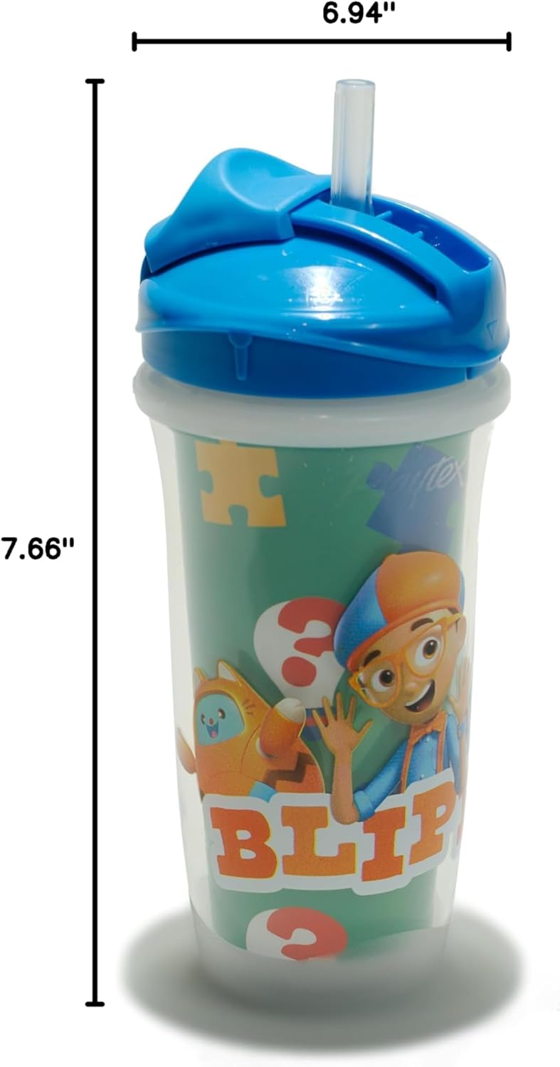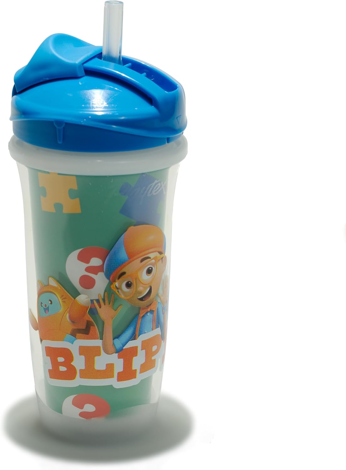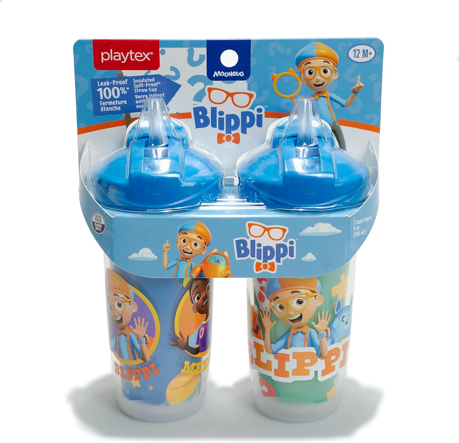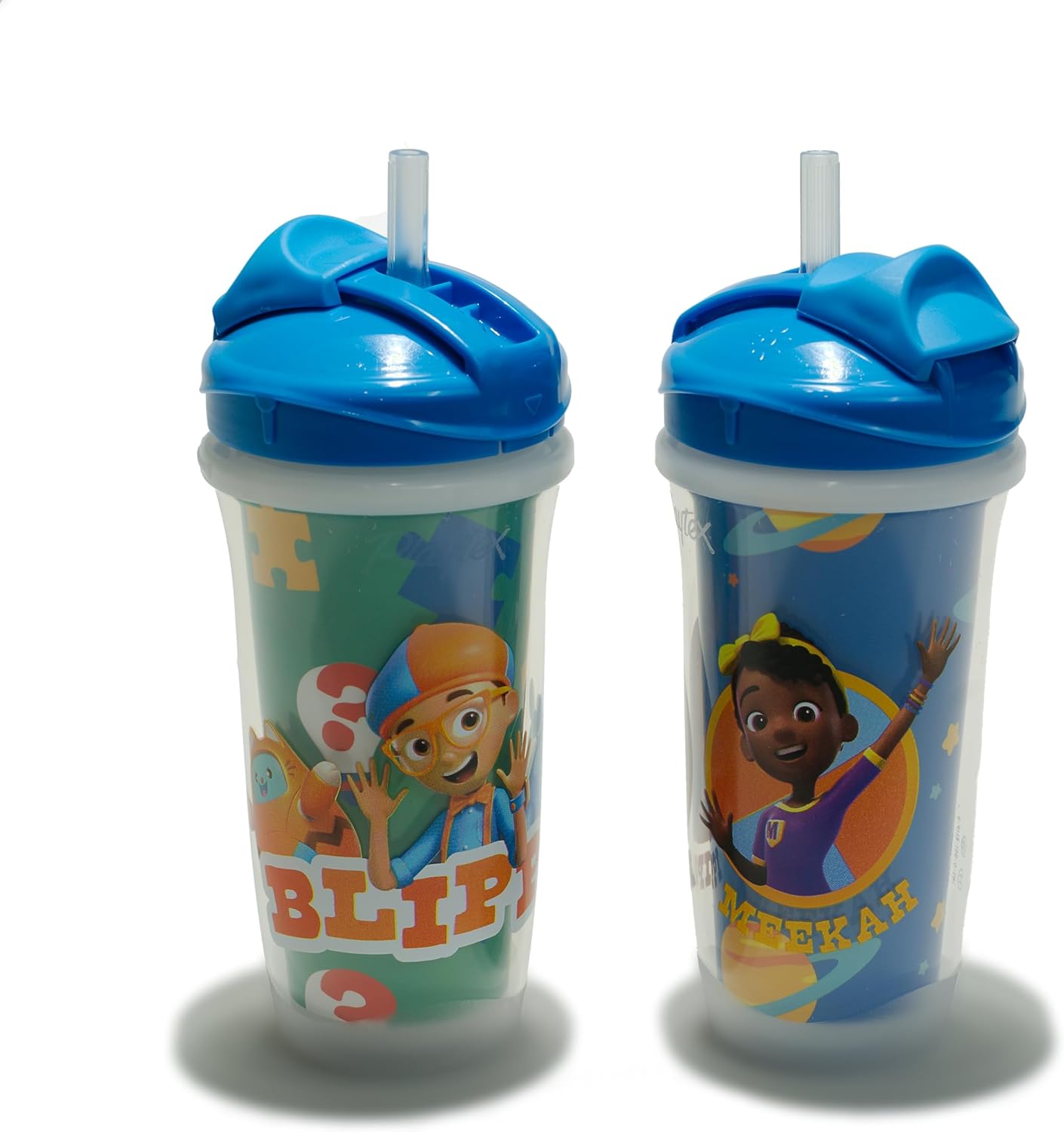 STAGE 3 CUPS: 9 Ounce, Pack of two sippy cups with 3D Graphics Blippi’s iconic orange and blue colourful design for 12 months and older