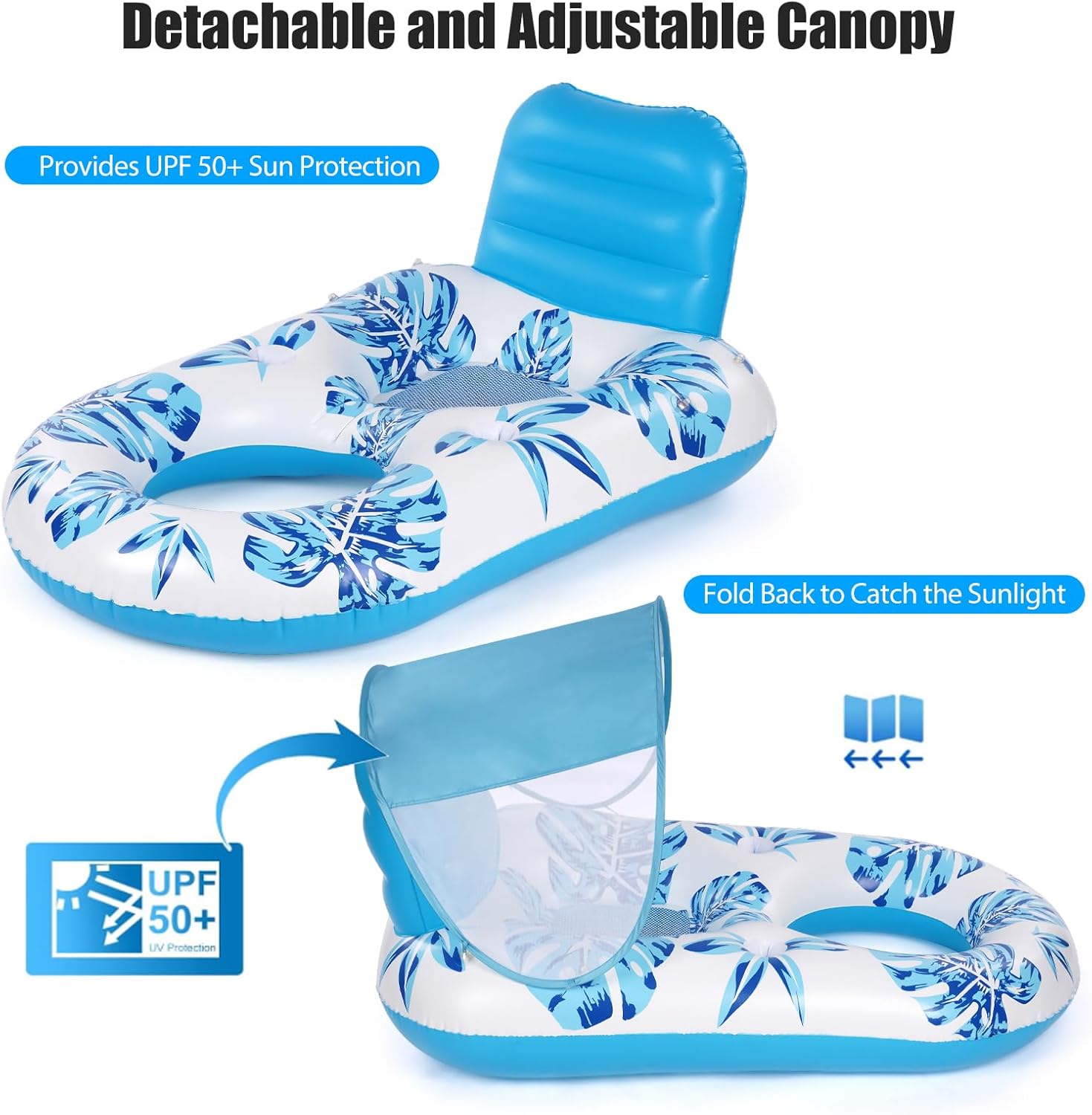 Handy Twin Cup Holders & Removable Cover: Get pleasure from hands-free rest with two spacious cup holders designed for cans, bottles, or your telephone. The UPF 50+ detachable sunshade supplies immediate solar safety, permitting you to modify between shaded lounging and sunbathing effortlessly—good for pool events or seaside days.