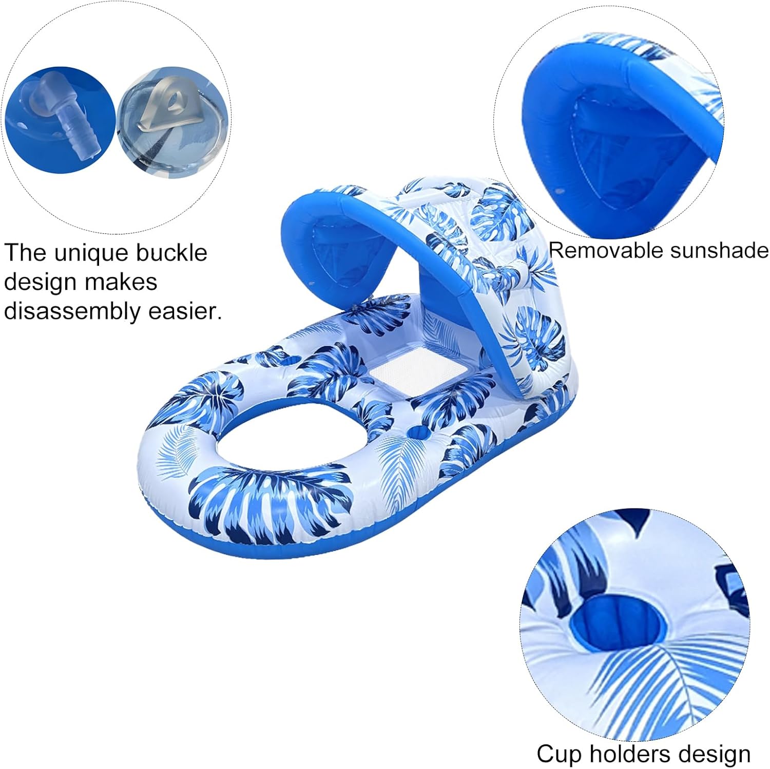 Detachable sunshade: The floating raft comes with a removable sunshade, offering a cool place and solar safety ,When you do not want it, simply eradicating the sunshade anytime and wherever and revel in sunbathing to the fullest.
