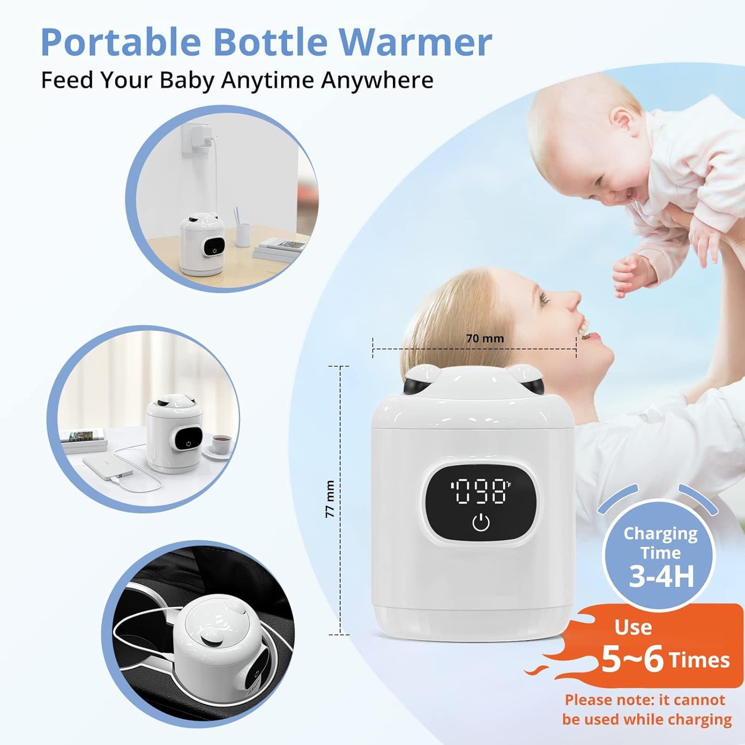 【Lengthy Continuity Battery】Usually, the full-charged bottle hotter can maintain 4oz milk at 104℉ for 12 hours. Lengthy continuity makes the transportable hotter workable for varied events, comparable to touring, tenting and night time feeding.