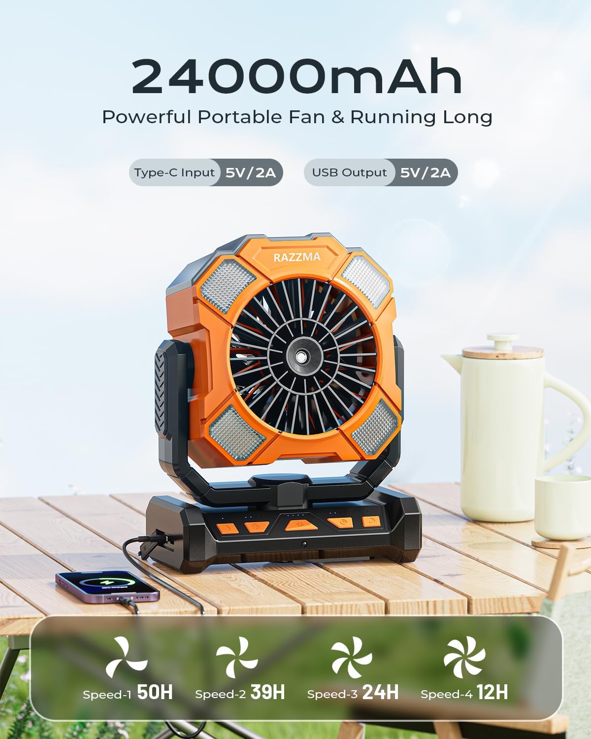 24000mAh Beast Battery | 80H Non-Cease Cooling: Largest battery at school powers 4-day tenting journeys (Low velocity). Outlasts $40-range followers by 3x. 12hr fast cost + energy financial institution operate for emergencies