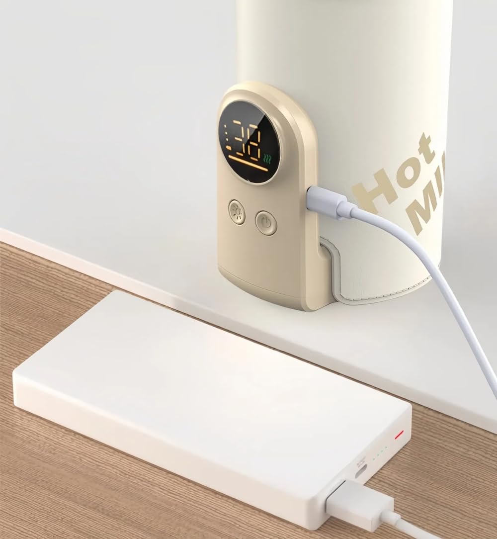 Portable Milk Bottle Warmer for Travel, Cordless Baby Bottle Warmer for Breastmilk& Formula, 8000mAh Battery-Power, Constant Warming for 5H,Temperature Display Rechargeable Bottle Warmer