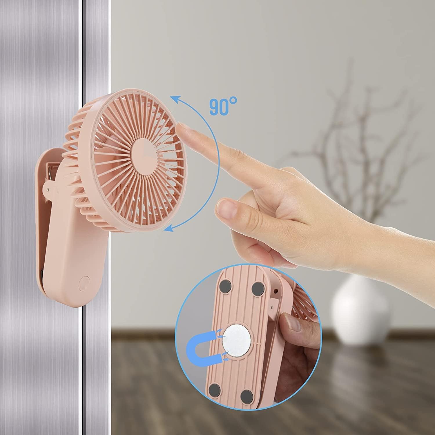 Portable Mini Clip on Fan, 4000mAh Rechargeable USB Battery Operated Stroller Fan with Magnetic – Pink