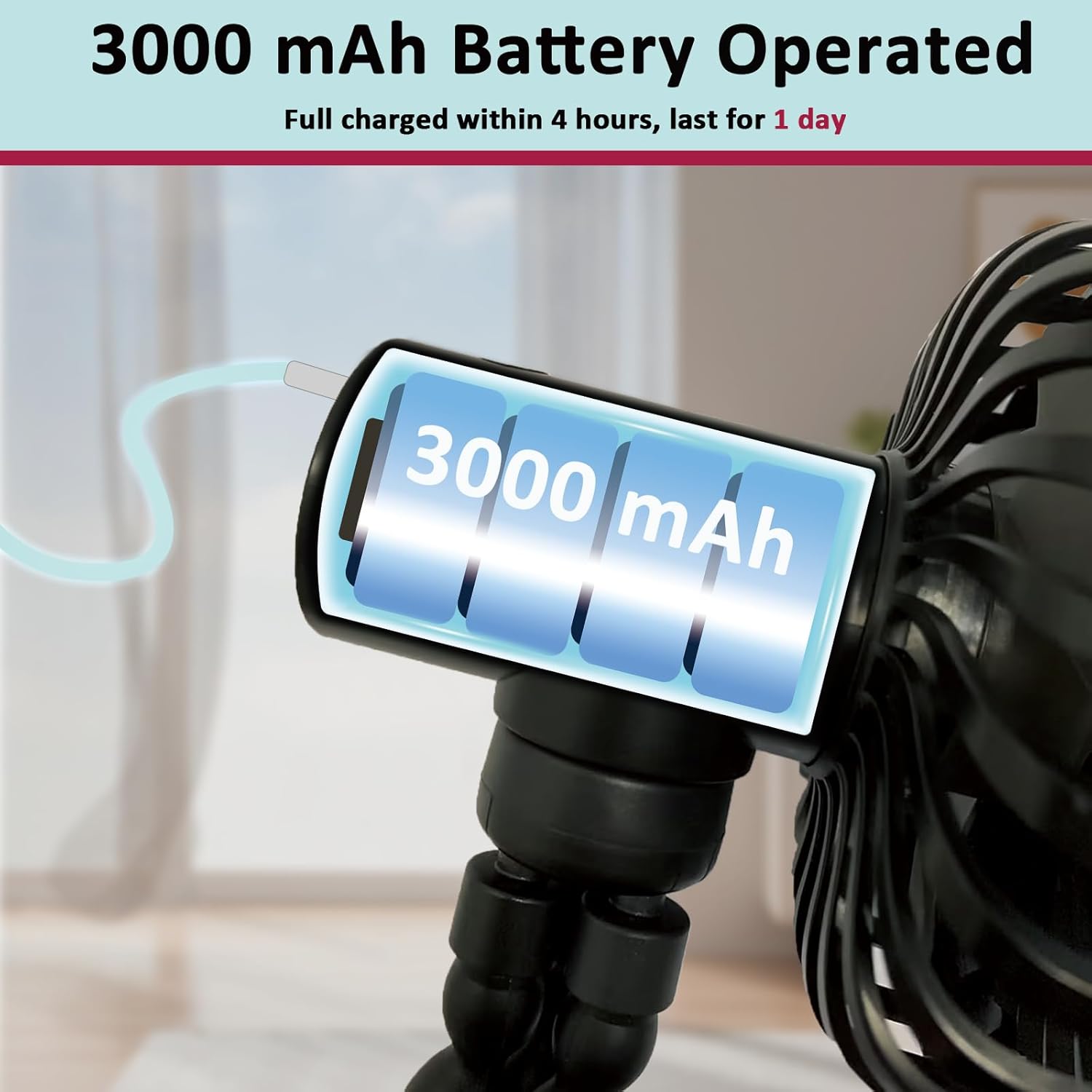 [Large Capacity Durable Battery, Rechargeable Anywhere] The stroller fan has a built-in 3000 mAh massive capability battery, relying on the wind pace, it may be used constantly for 4-12 hours. Say goodbye to frequent charging. The fan adopts Kind-C connection port, which could be charged by outlet, laptop, automobile charger, and can be utilized wherever and anytime.