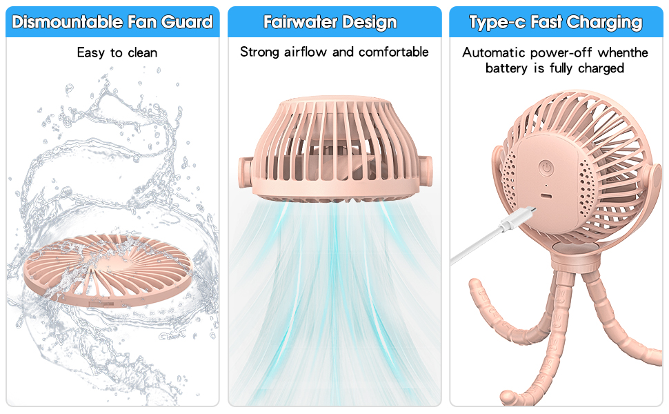 【3.0 HOURS CHARGE | 1.5-6 HOURS OF COOL】Constructed-in 2500mAh battery, the infant stroller fan can breeze cool for six hours, completely satisfying your wants on scorching summer season days. The design of the built-in giant lithium battery and up to date USB-C port make this stroller fan to be quick recharged in 3 hours. Simply powered by USB to make sure lengthy battery life.