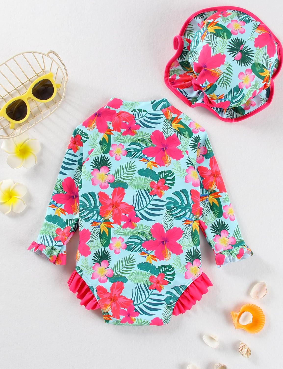 New child Child Women Swimsuit Bathing Go well with One Piece Swimwear with Hat