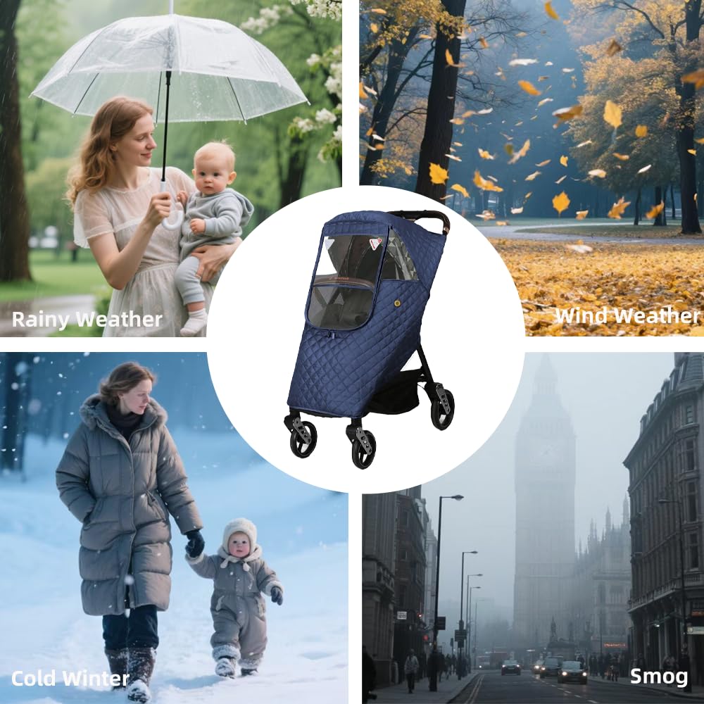 Rain Cover for Stroller, Universal Stroller Rain Cover Winter, Baby Travel Weather Shield Windproof and Waterproof Protect from Dust and Snow (Blue)