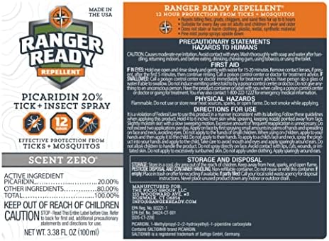 EFFECTIVE: Ranger Ready 20% Picaridin bug repellent provides 12 hour protection from ticks and mosquitoes. Repels gnats, biting flies, chiggers, no-see-ums, and fleas for up to 8 hours.
