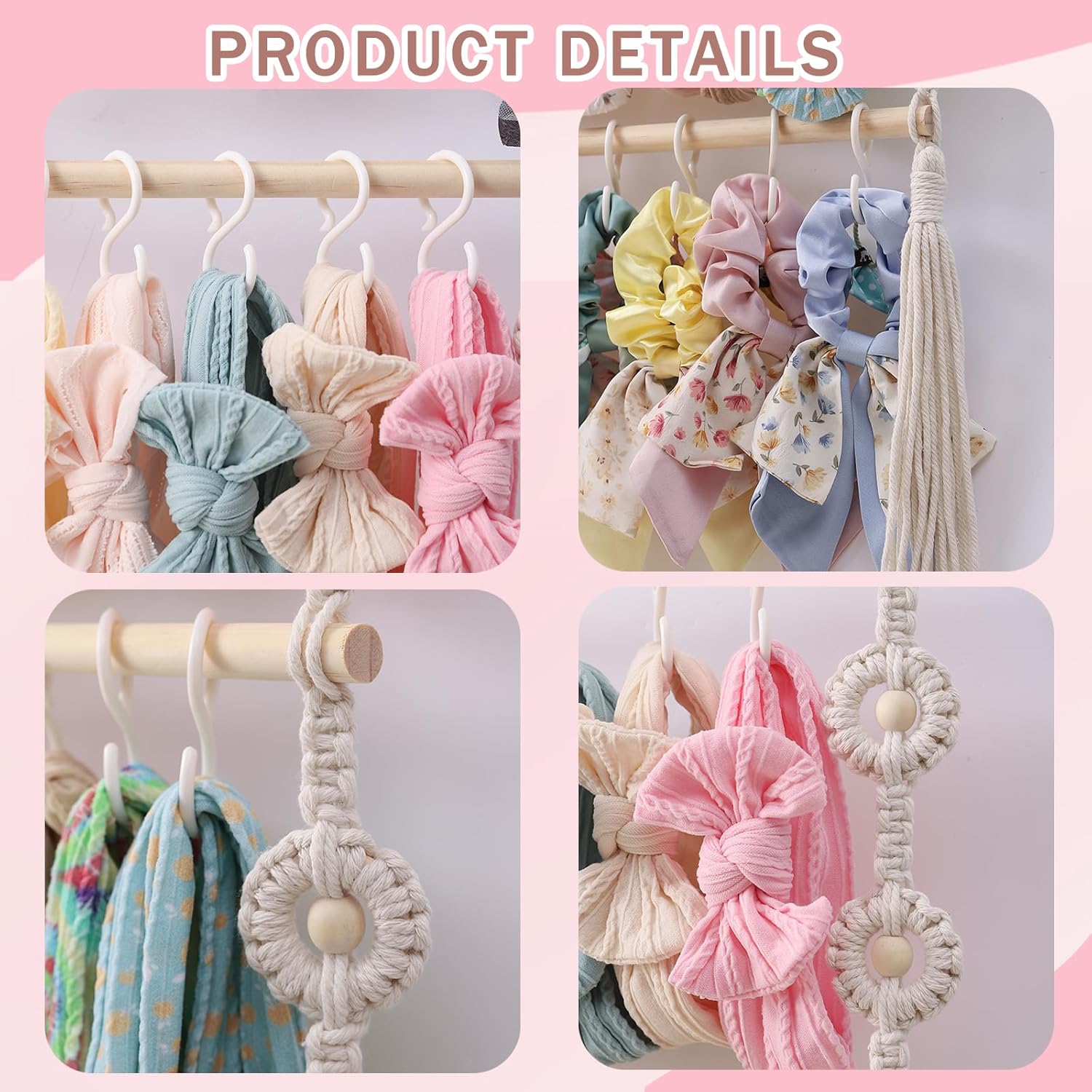 This hair accent storage rack is provided with a self-adhesive hook and 30 movable hooks, and comes with 6 ornamental ropes which might be each lovely and might accommodate many hair clips.