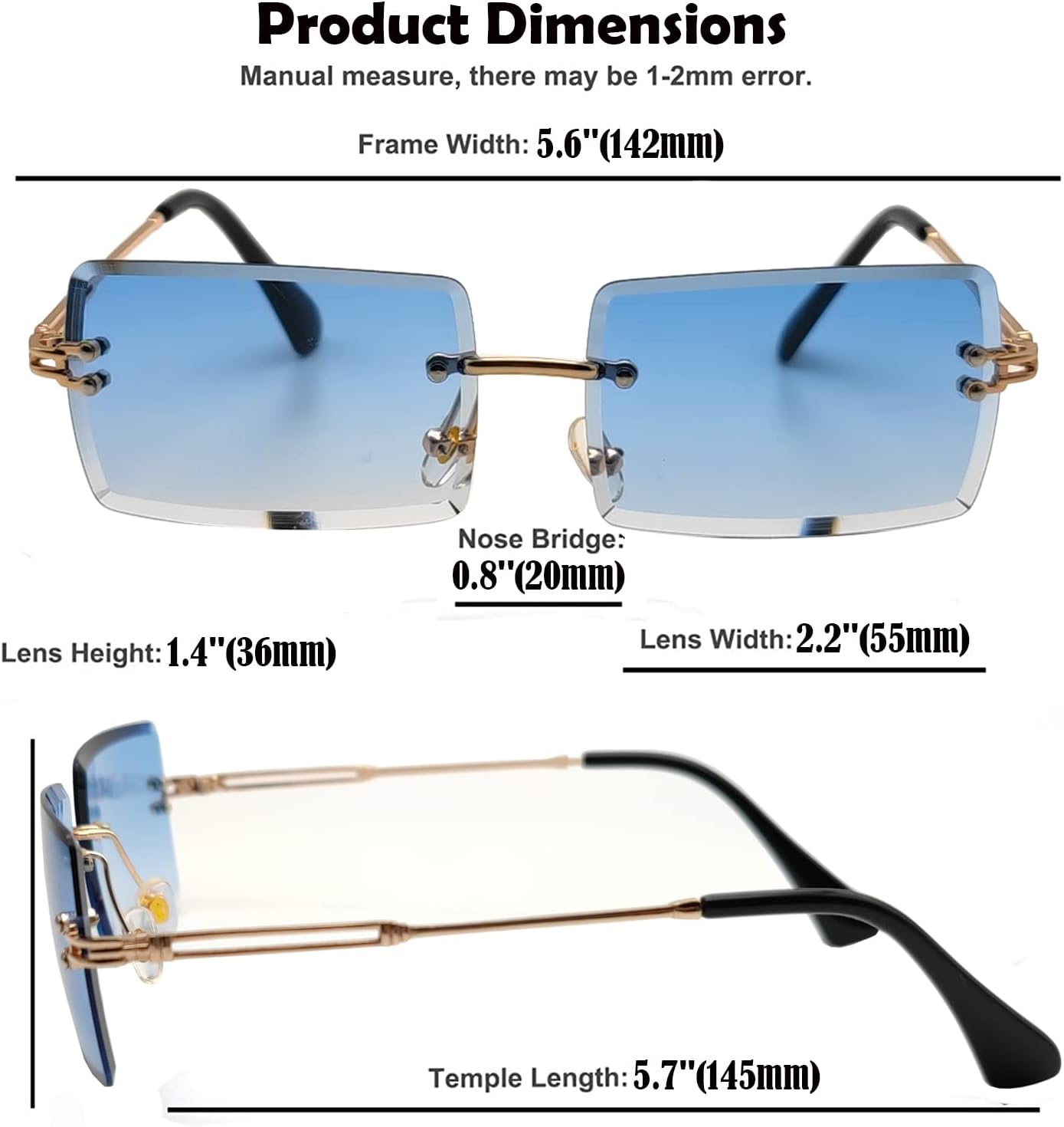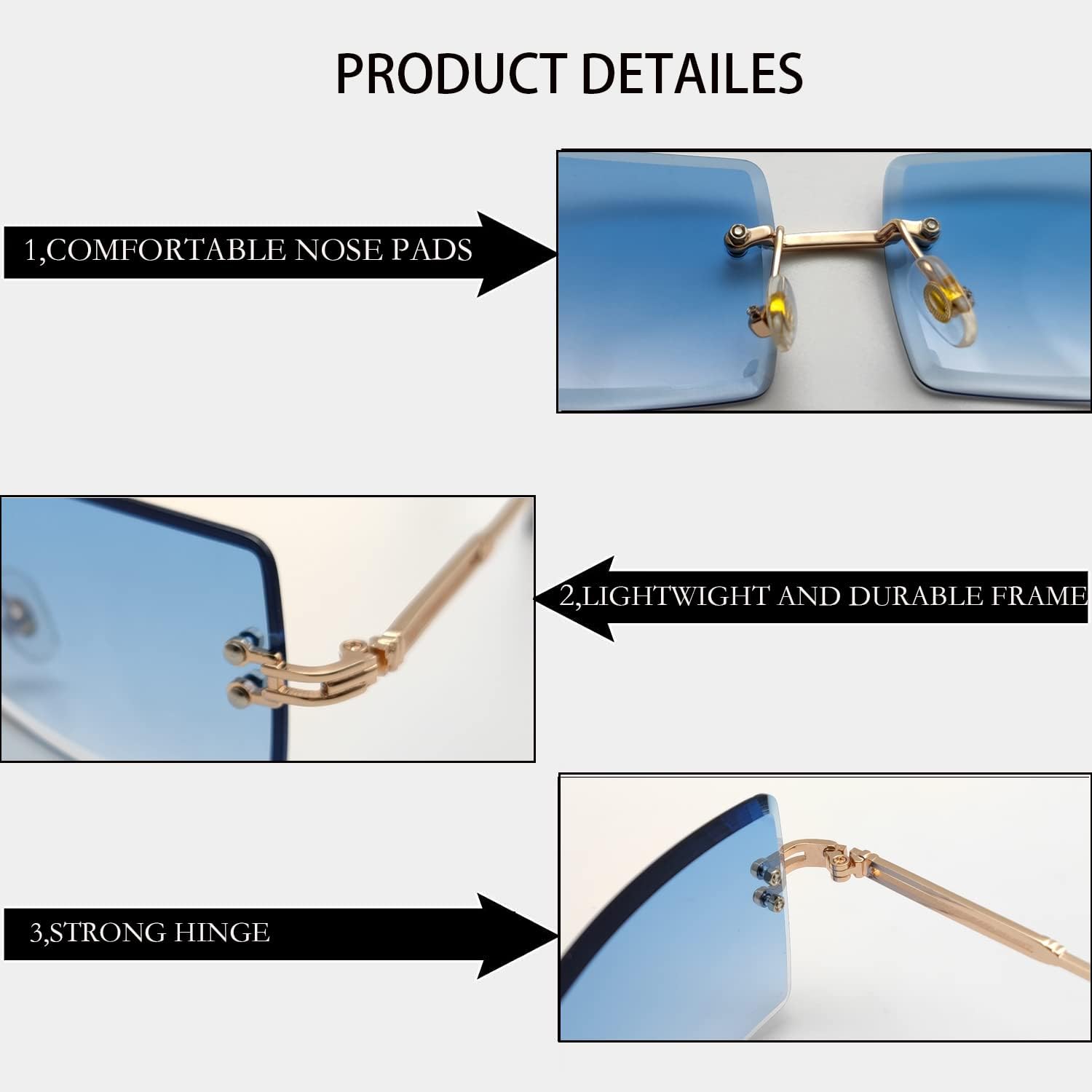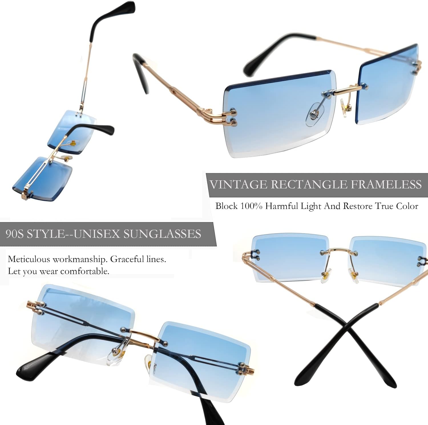 These Retro Rimless Rectangle Sun shades for Girls Males Tinted Lens Gold Metallic Frameless Classic Sq. Glasses