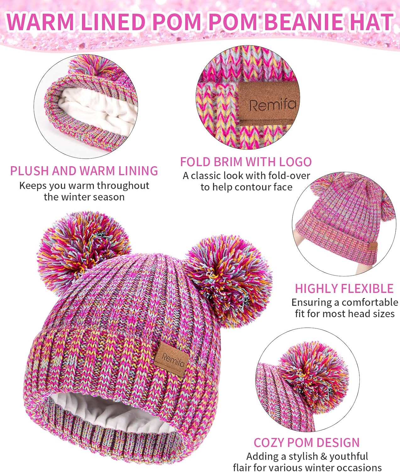 Remifa Children Winter Hat Gloves Scarf Set for Women Boys Ages 3-8 9-15
