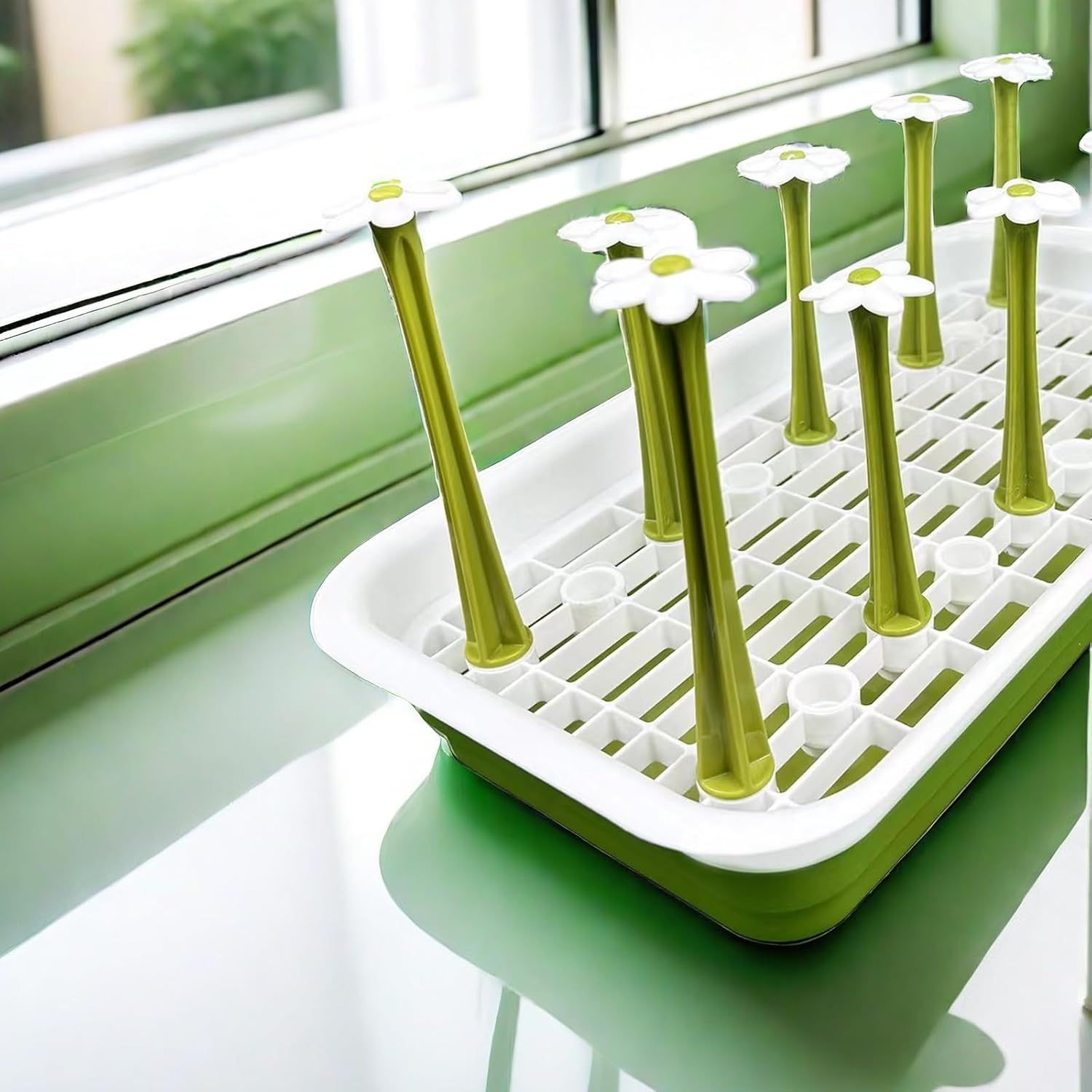 【Straightforward Set up and Cleansing】: This grass bottle drying rack is disassembled, once you obtain it, it’s worthwhile to press the flower formed silicone cap to repair it on the pole, the opposite finish of the pole screws onto the drain rack, when not in use, it may be folded for simple storage. Tray water accumulation doesn’t spill out simple to wash, no want to fret about getting moist countertop. We additionally delivered a small brush to assist clear the bottles