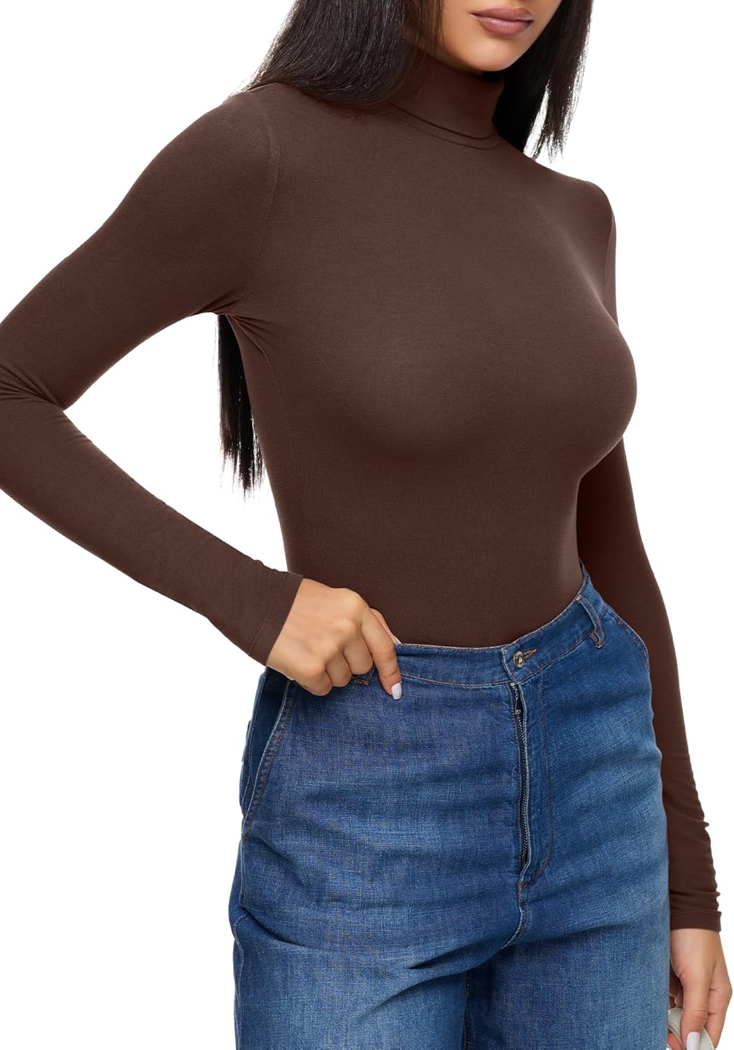 REORIA Womens Turtleneck Lengthy Sleeve Tight Bodysuit Tops Fall Garments