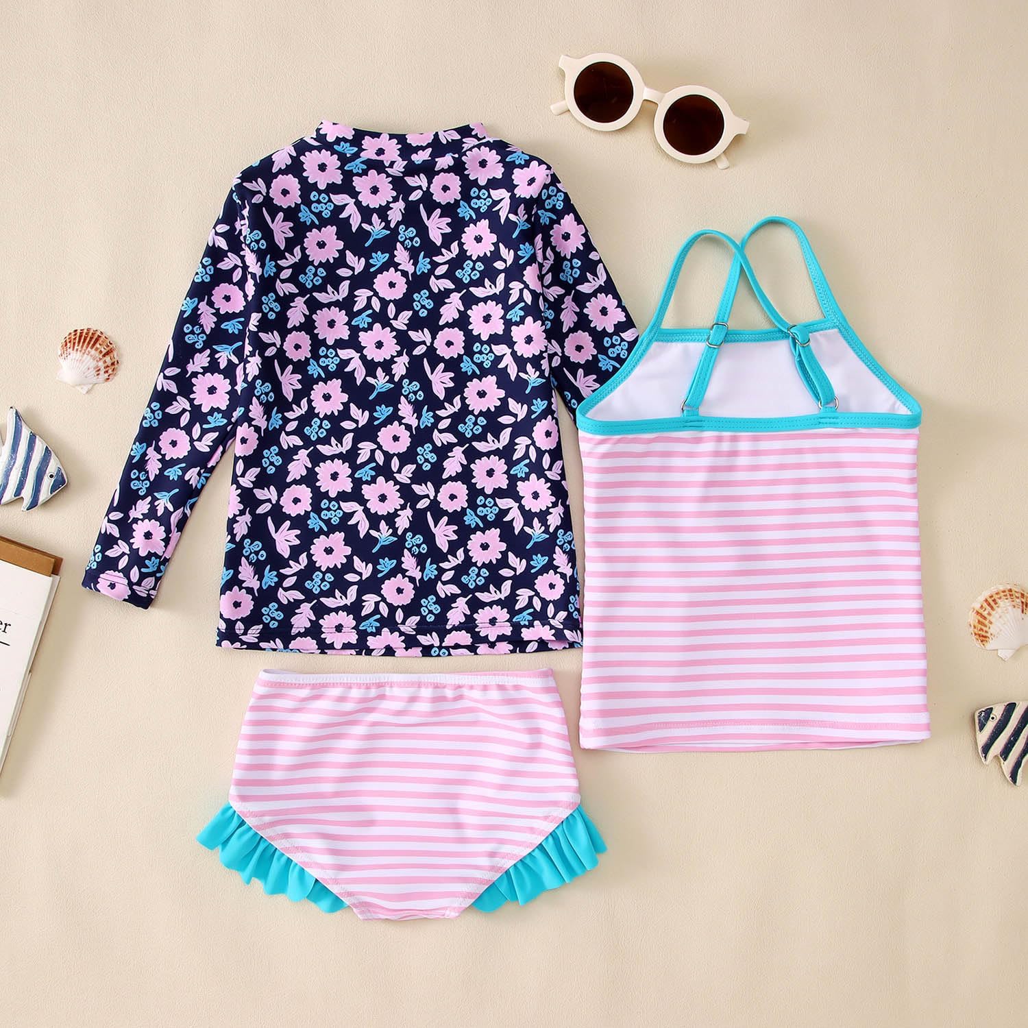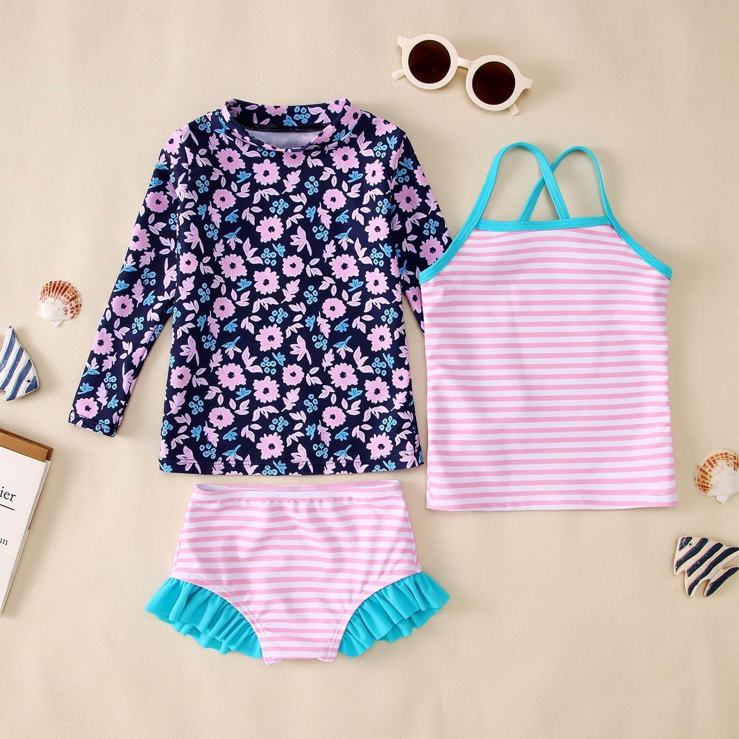 Merchandise mannequin quantity : Toddler Child Lady 3-Piece Swimsuits Set