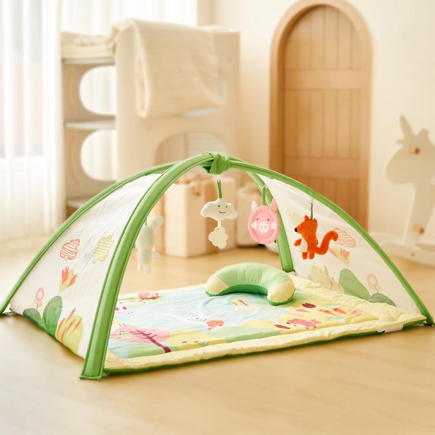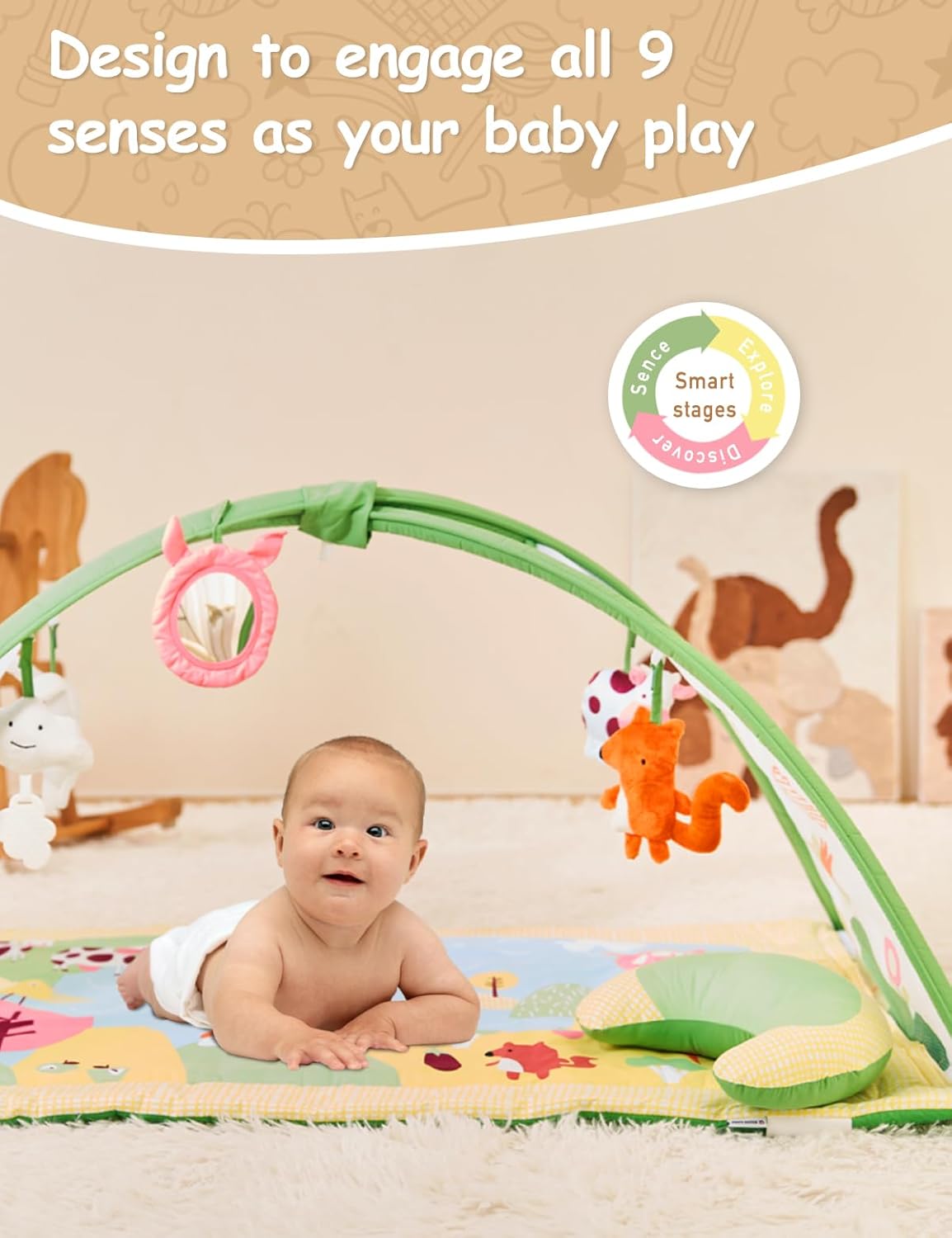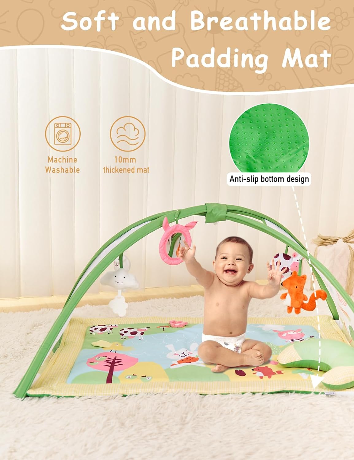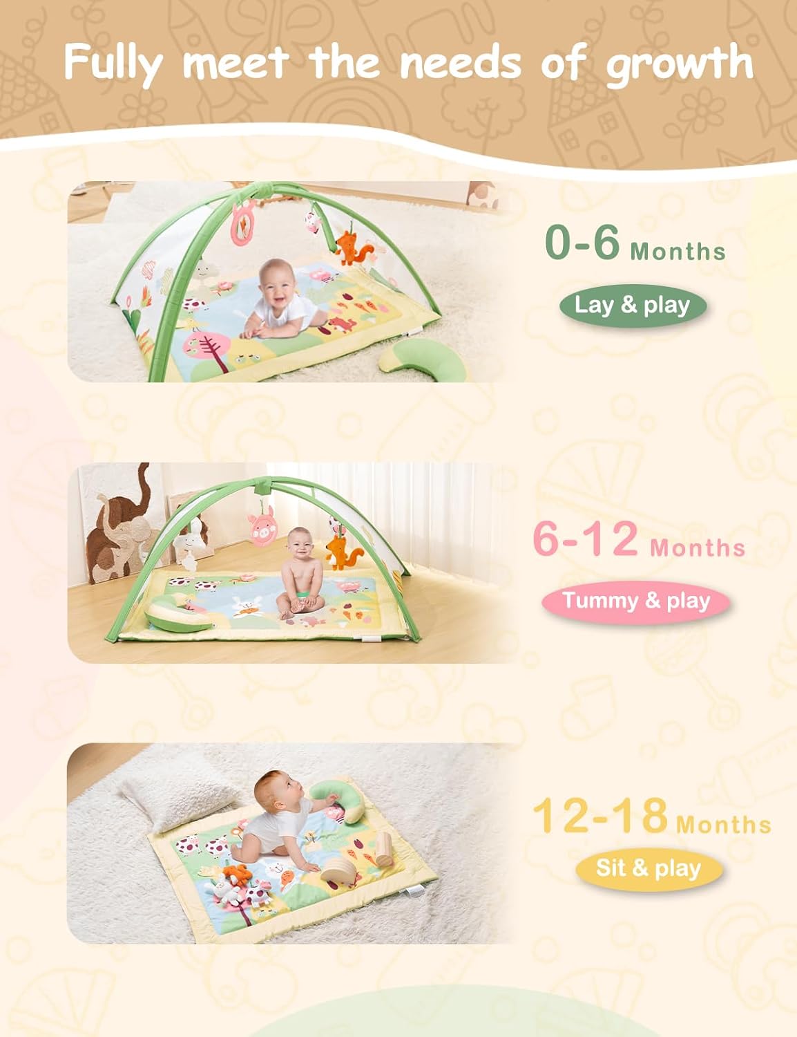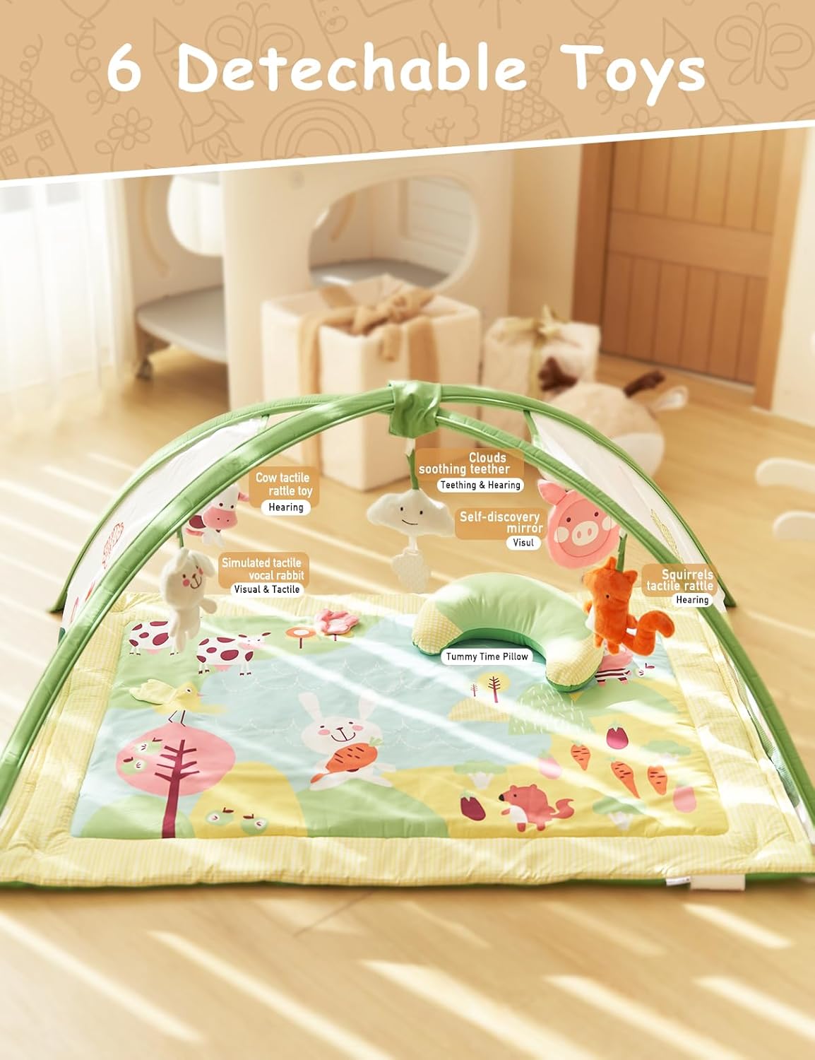 New Expertise Early All-Round Growth – Our exercise mat has 6 removable sensory animal motif toys (crinkle cloth, bells, squeakers, self-discovery mirror, and cloud BPA-free teether) and a tummy time pillow. The 3D and soundable sample on the health club mat sparks exploration, making tummy time joyful and enriching