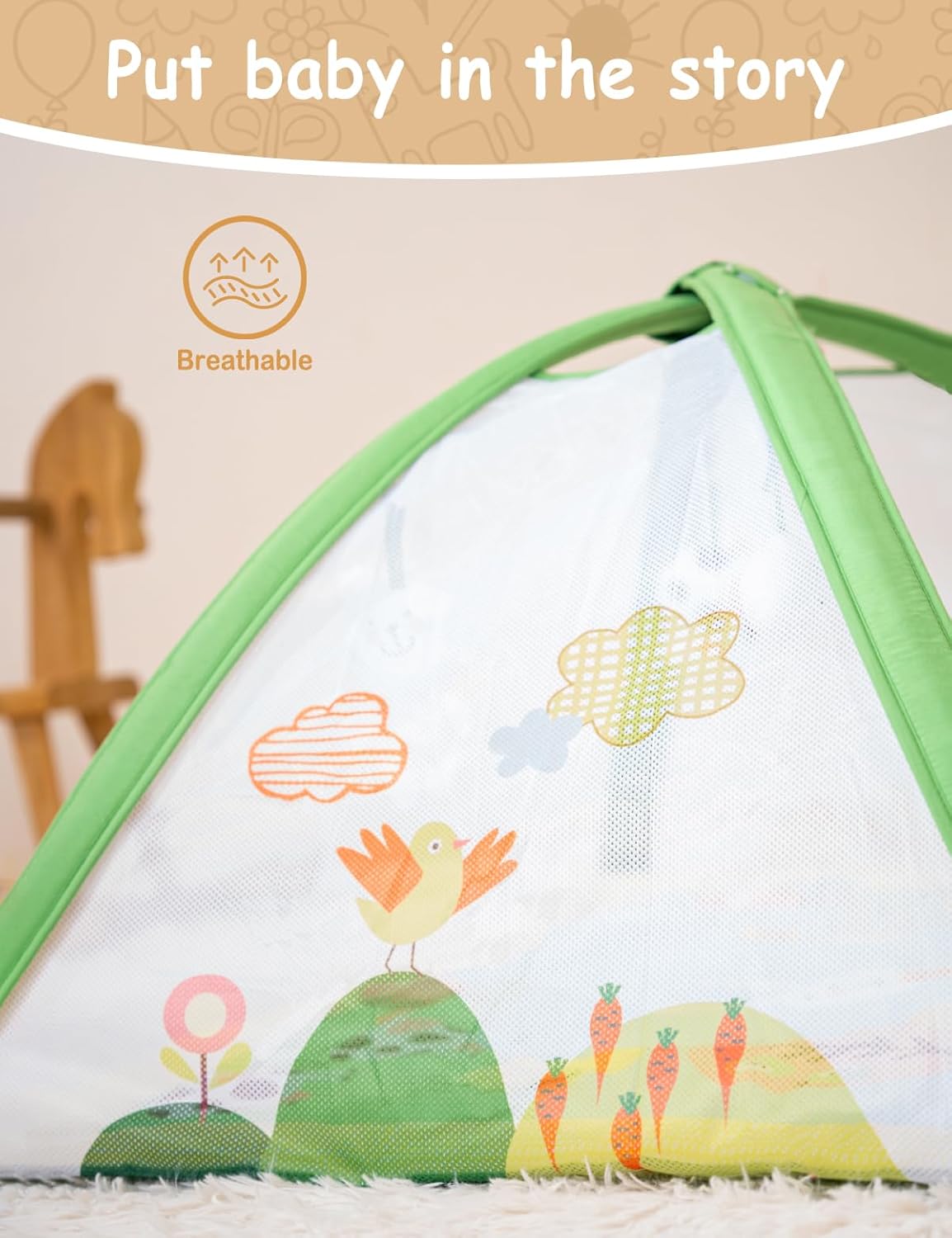 Security and Snug – The outsized child play mat measures 40″ x 31.5″ x 19″, ample play space for the infant to discover, stretch, sit, or crawl. The infant tummy time play mat is 1.5‘’ thick and evenly crammed with high-quality cotton, premium consolation and flatness, offering sufficient assist for the infant’s backbone, and anti-slip non-woven backing. Offering a safe house for varied developmental phases