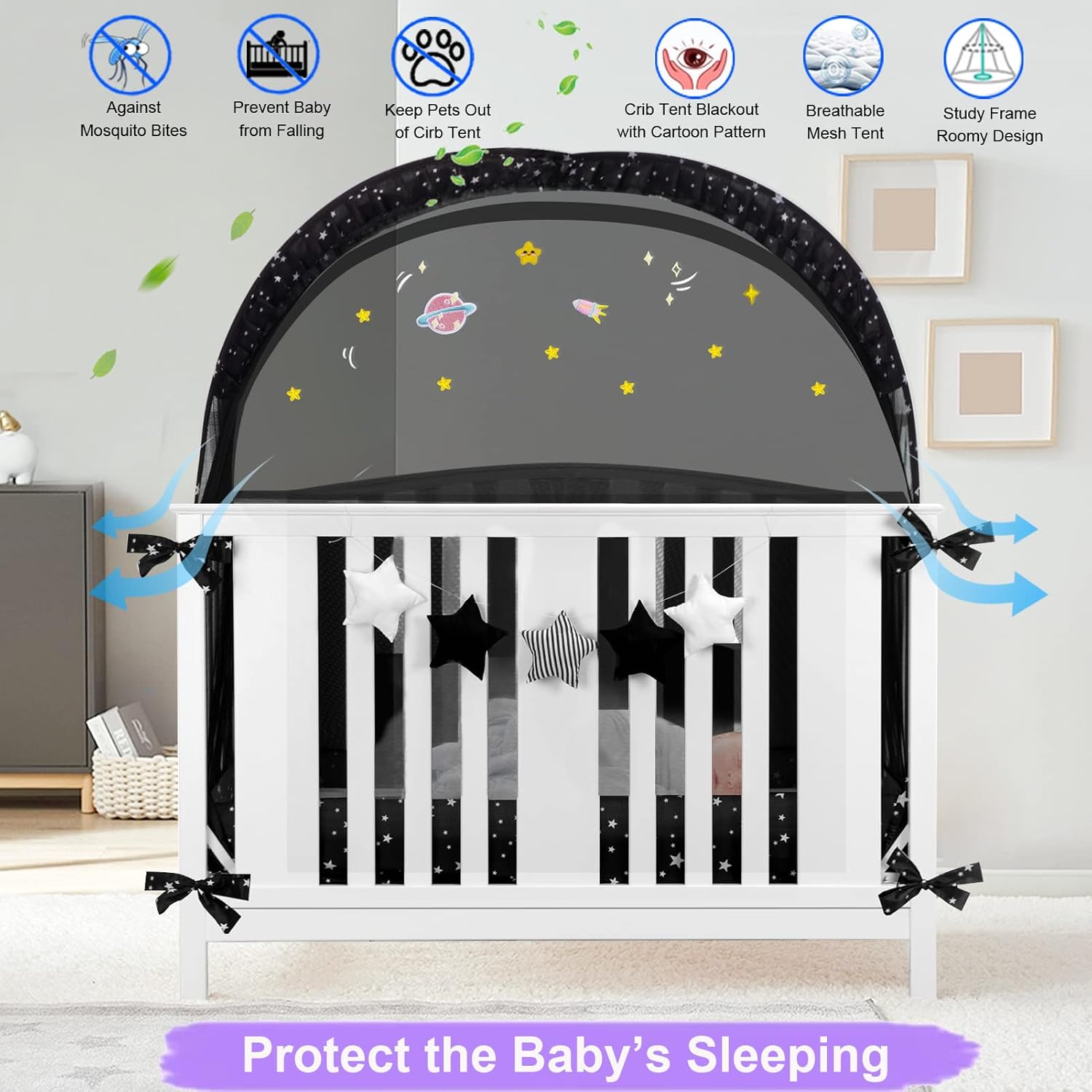 ☪ Unique DIY Starry Sky Sample :Infants are very within the notion of coloration, so we have now designed a cute embroidered starry patterns. Use these cartoon fabric stickers to brighten your child mosquito internet.Child should love its sleeping bag.