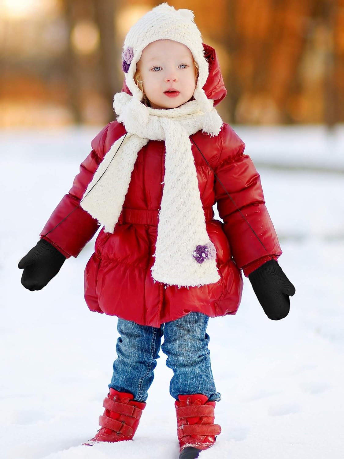 SATINIOR 3 Pairs Toddler Magic Stretch Mittens Full Finger Knit Gloves Kids Winter Warm Mittens