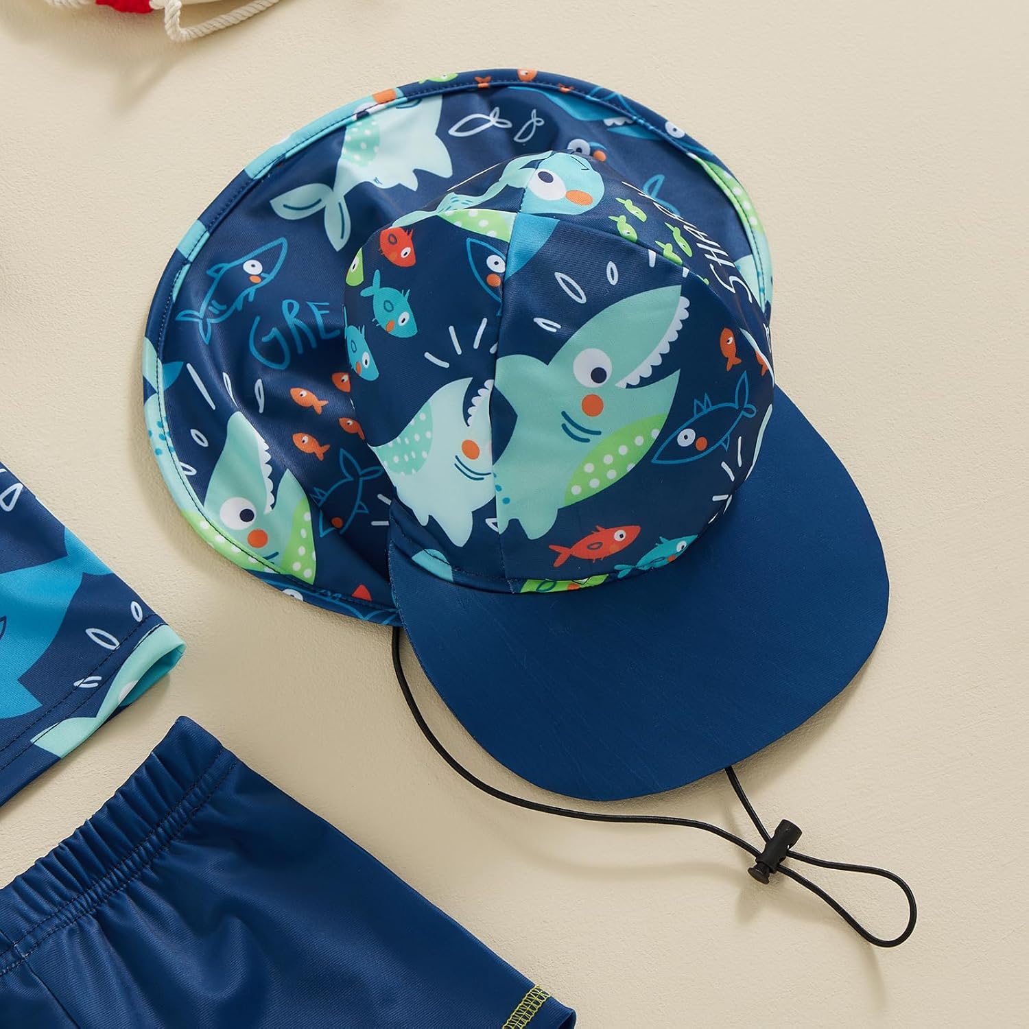Boy 4th of July Swimsuit Set Star Half Zipper Quick Sleeve Tops Elastic Waist Shorts Solar Hat with Neck Flap 3Pcs Bathing Fits