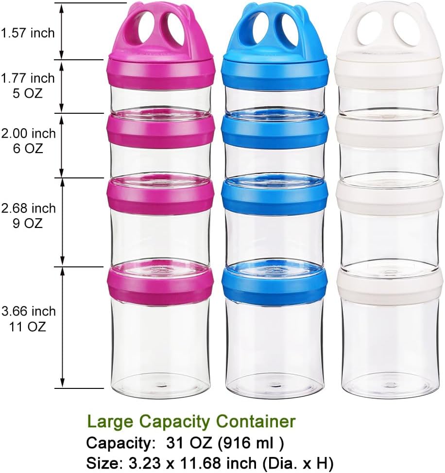 Twist Lock system connects containers of any measurement in any order; with the silicon ring inside, Hermetic and Leak-proof; Detachable carry deal with for simple carrying or clipping to bag.