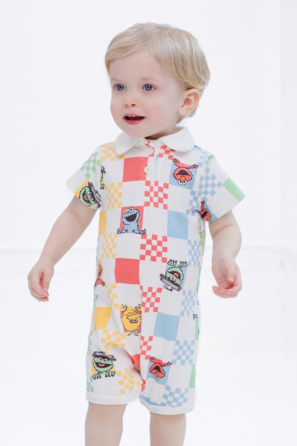 Costume your baby in these lovely Sesame Avenue outfits and watch them study and play with their favourite characters! This trendy pack of two one-piece rompers includes a handy easy-to-dress snap design, colourful rainbow checkered print, cool collared look, and enjoyable and vibrant paintings of Elmo, Cookie Monster, Massive Fowl, and Oscar the Grouch that your baby will like to put on! Made from a delicate materials that retains your child snug, these modern Sesame Avenue jumpsuits are good for all-day journey!