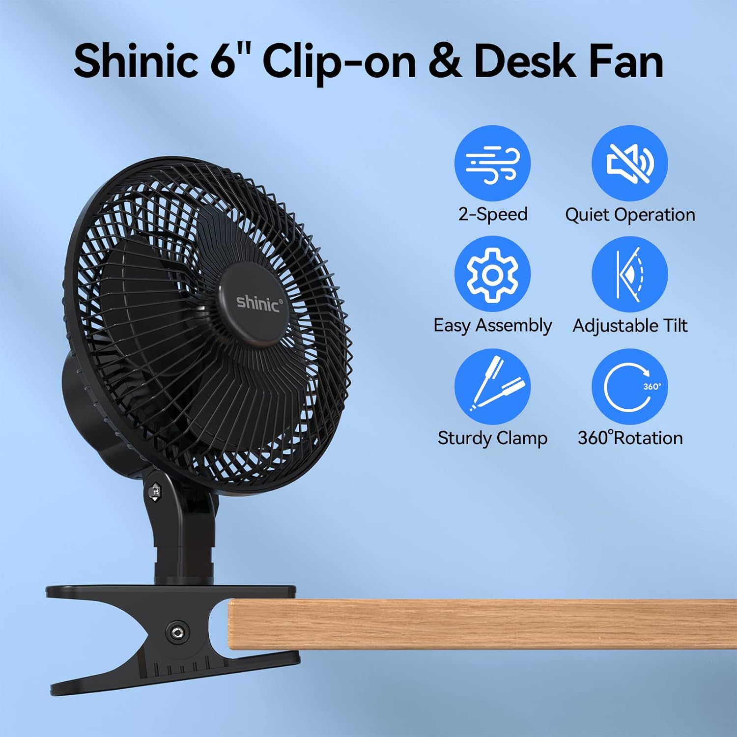 Shinic 6-inch 2 IN 1 multi-purpose transportable clip and desk fan is ideal for residence,workplace desk,bed room,gymnasium, child stroller and so forth.