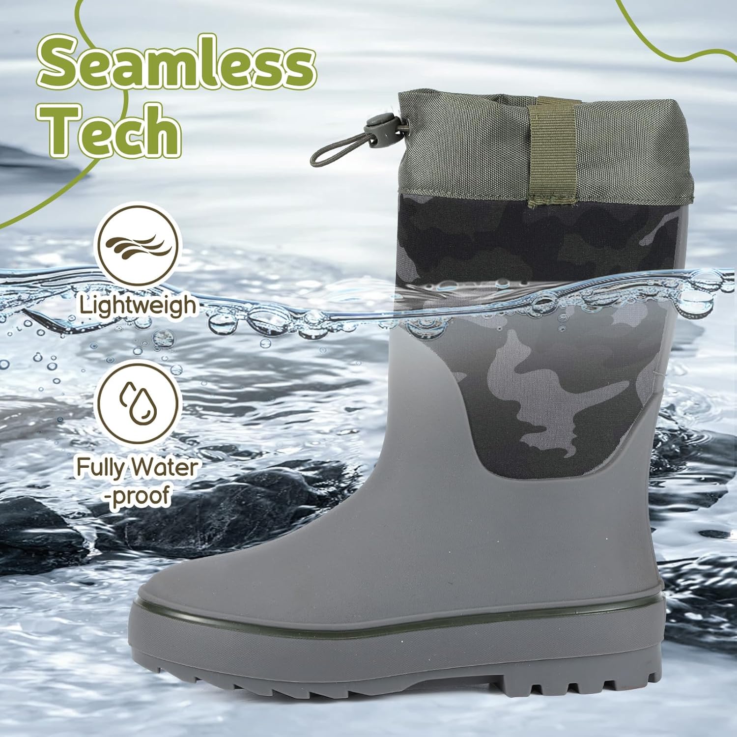 Males’s Waterproof Rain Boot