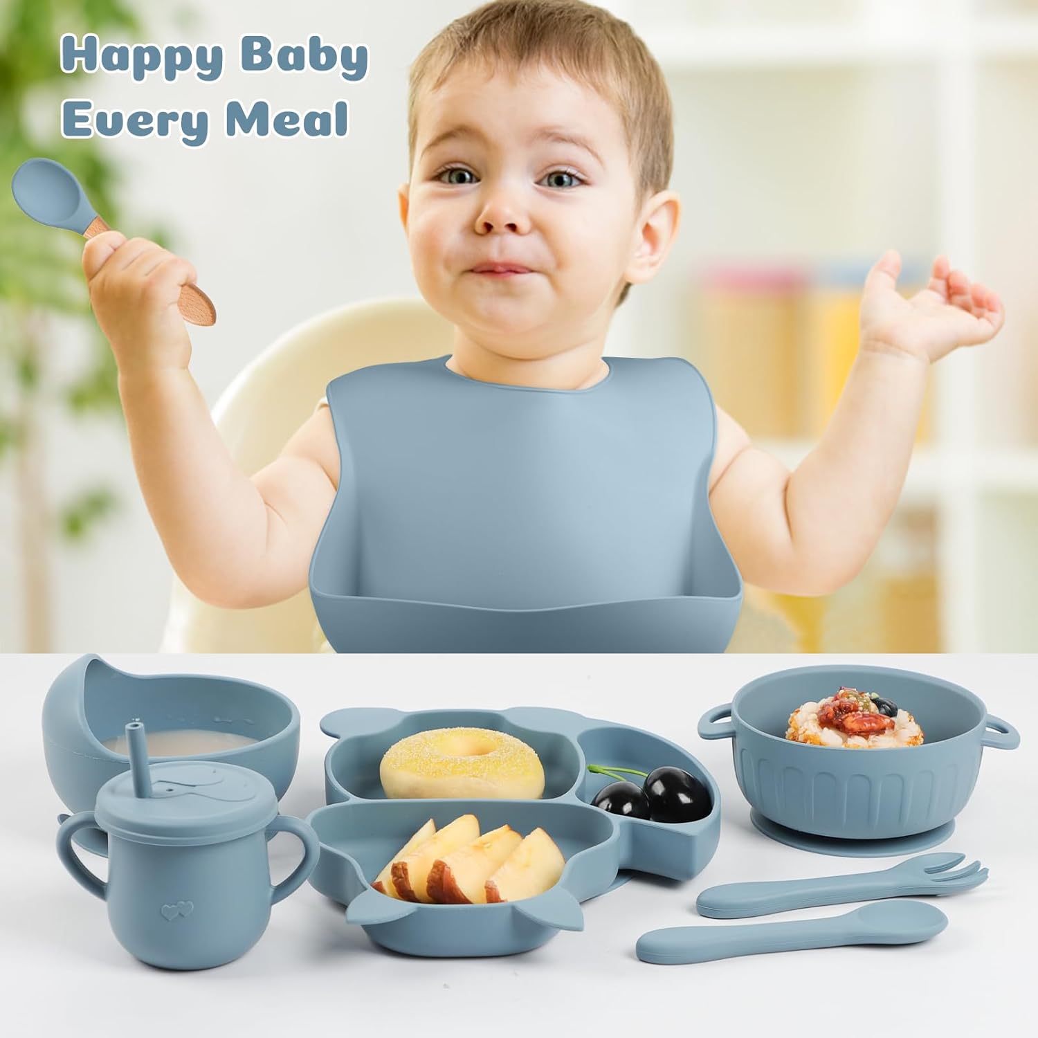 【PERFECT SET】It is a stunning toddler feeding set, appropriate for child’s self-feeding after weaning, with cute form. There are 15 items inside, together with: 1 adjustable child bib, 1 coaching cup with deal with, 1 dinner plate with suction, 1 snail bowl with suction, 1 flat bowl with suction, 1 finger toothbrush, 1 chewable bunny formed teether, 1 straw lid, 1 snack lid, 6 completely different types of forks and spoons