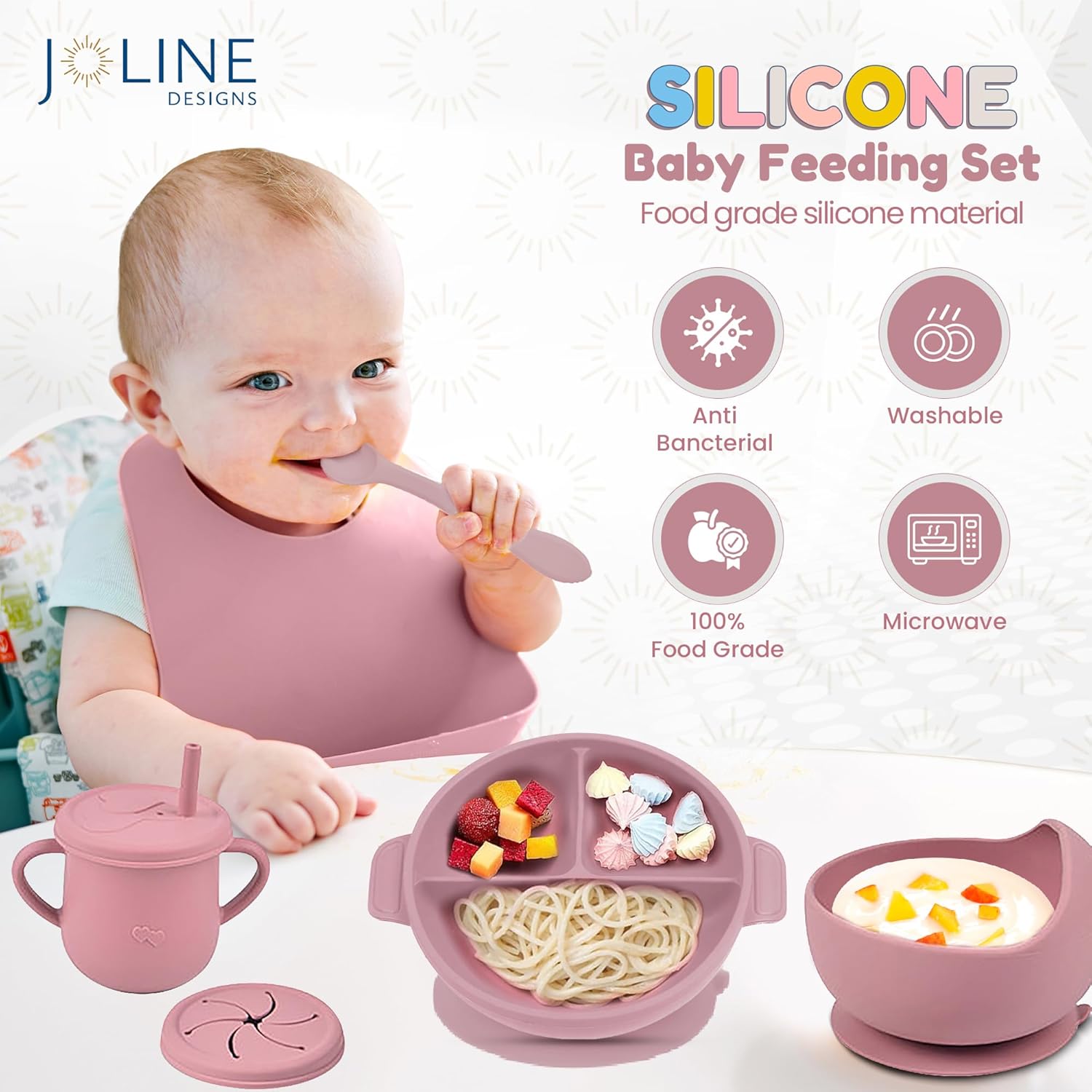 This silicone feeding set is designed with comfort, being each stain-resistant and dishwasher-safe. The sleek, versatile silicone materials wipes clear effortlessly, even after sticky meals. Plus, it’s microwave-safe, making reheating meals a breeze. Merely place it within the dishwasher for a radical cleansing or wipe it down for fast reuse.